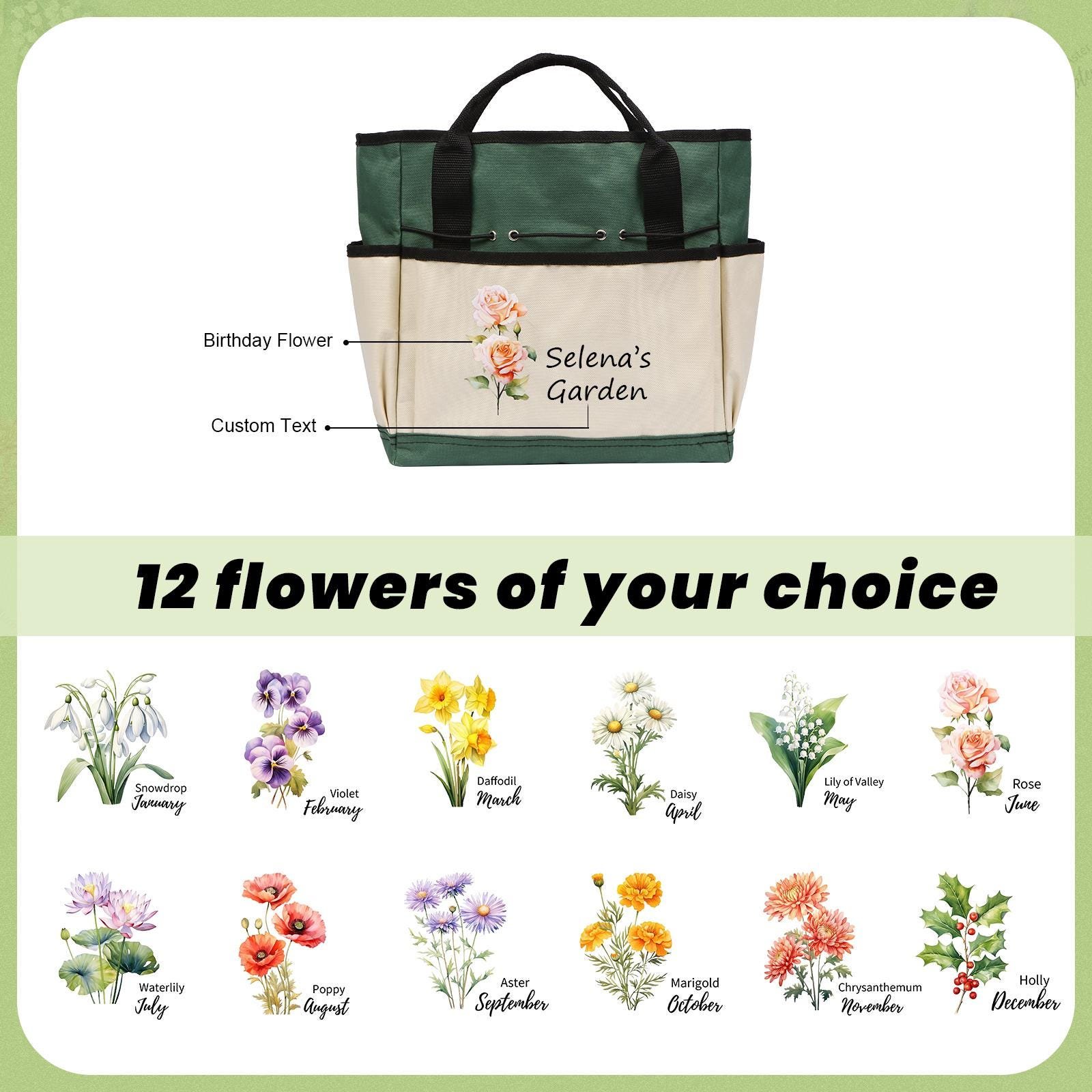 Personalized Gardening Tool Bag,Custom Birth Flower Tool Organizer Bag, Floral Utility Tote for Gardeners, Gardening Gift For Dad