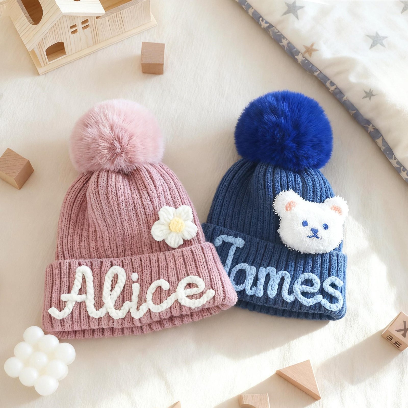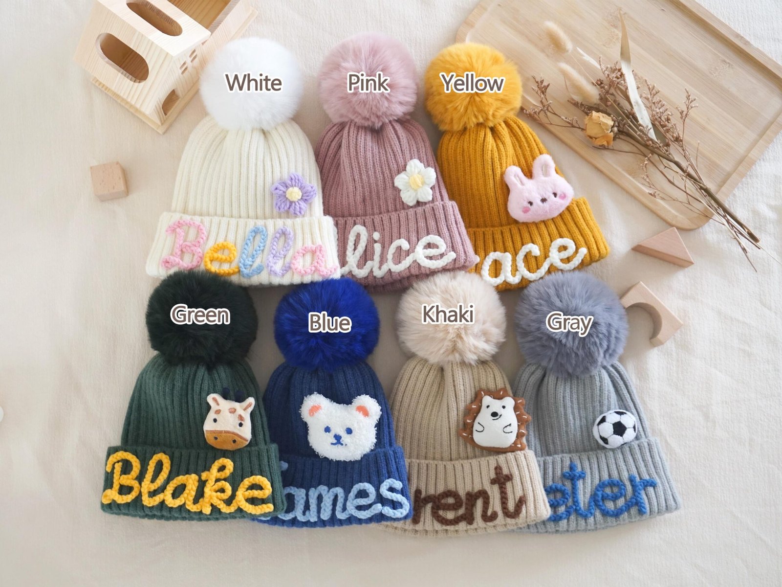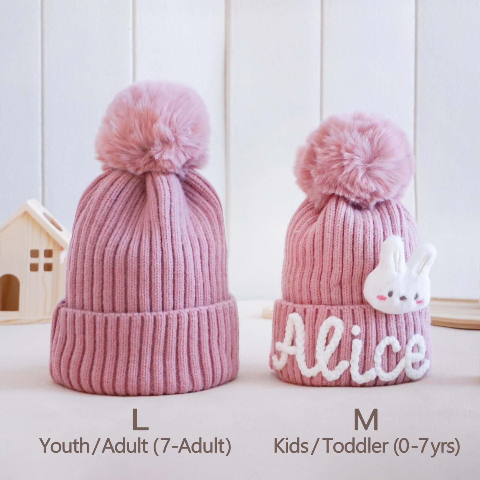 Personalized Kids Knit Beanie: Toddler to Adult Sizes, Detachable Pom