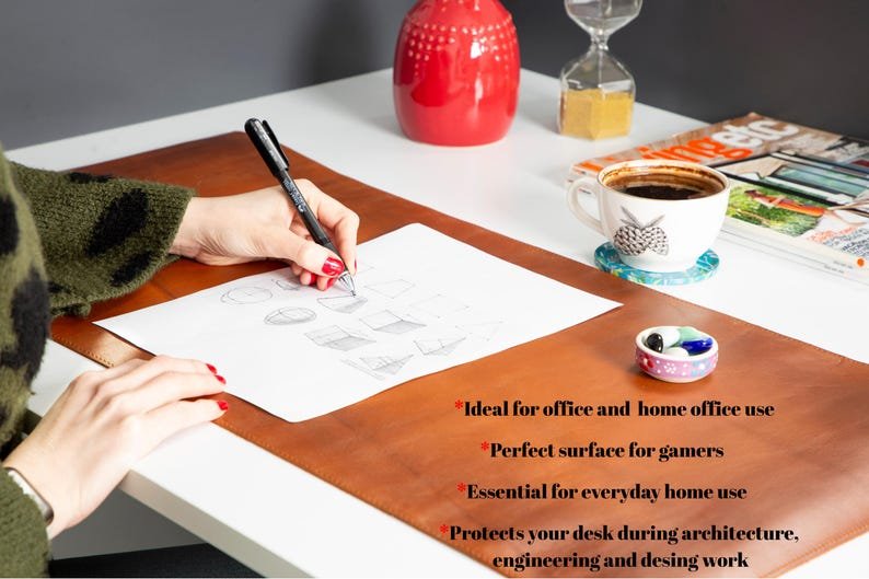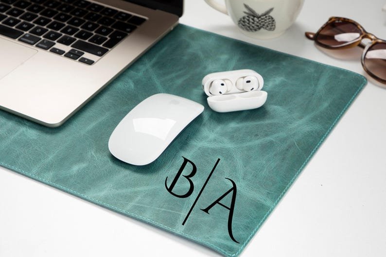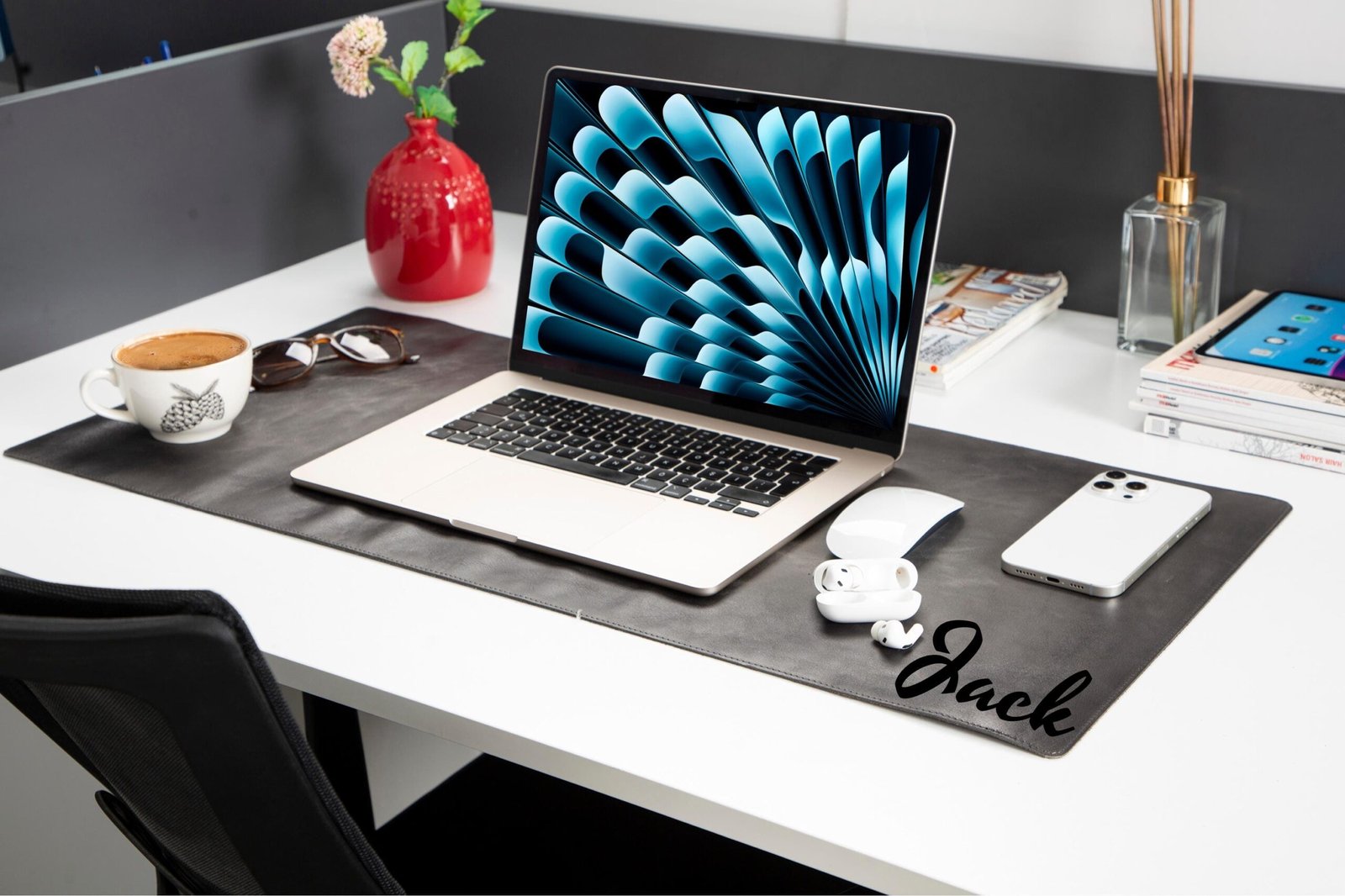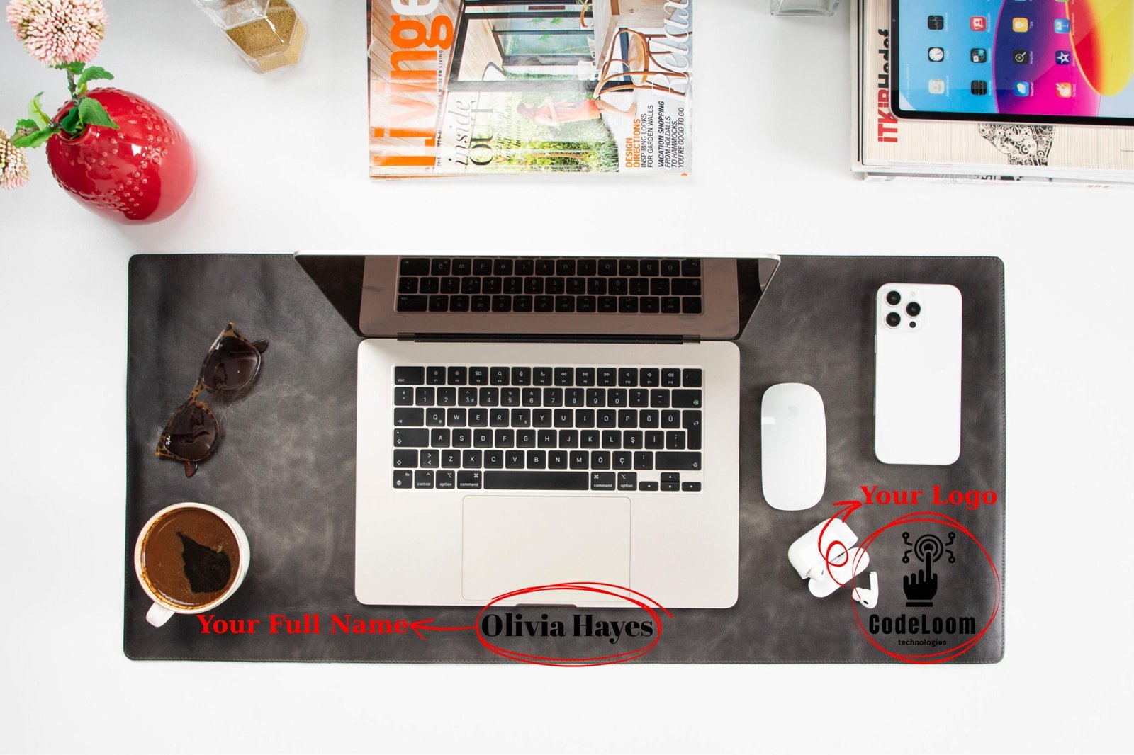Personalized Leather Desk Mat – Custom Size Desk Pad, Large Mouse Pad, Handmade Office Writing Blotter, Work Desk Decor, Gift for Men & Dad