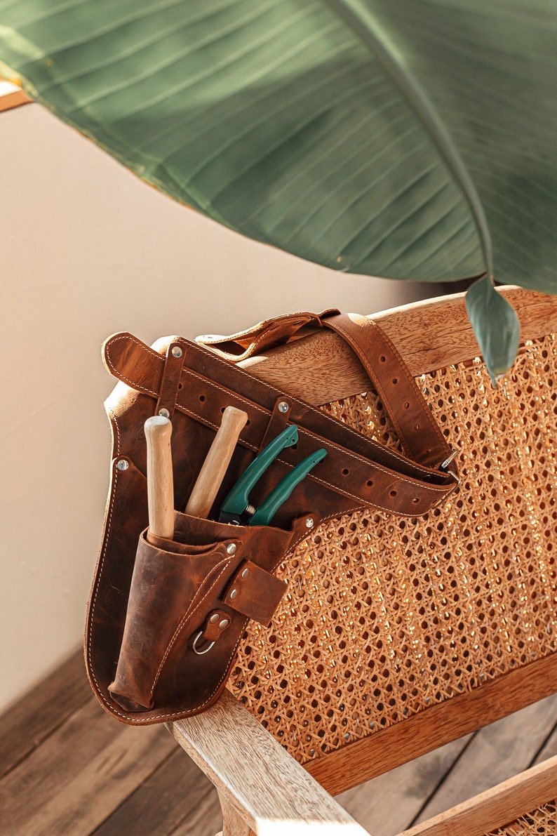 Personalized Leather Garden Florist Tool Belt: Farmer Tool Bag