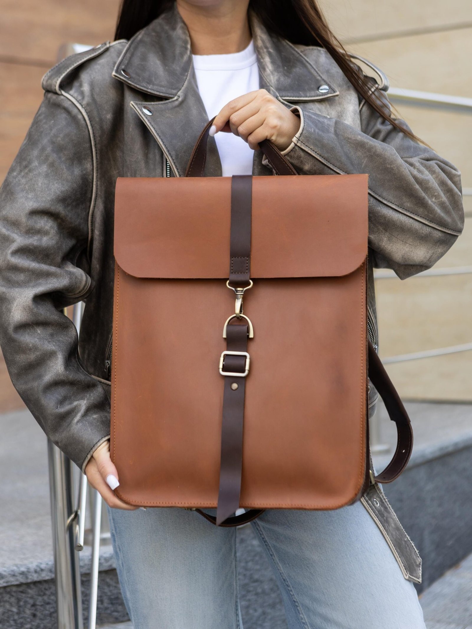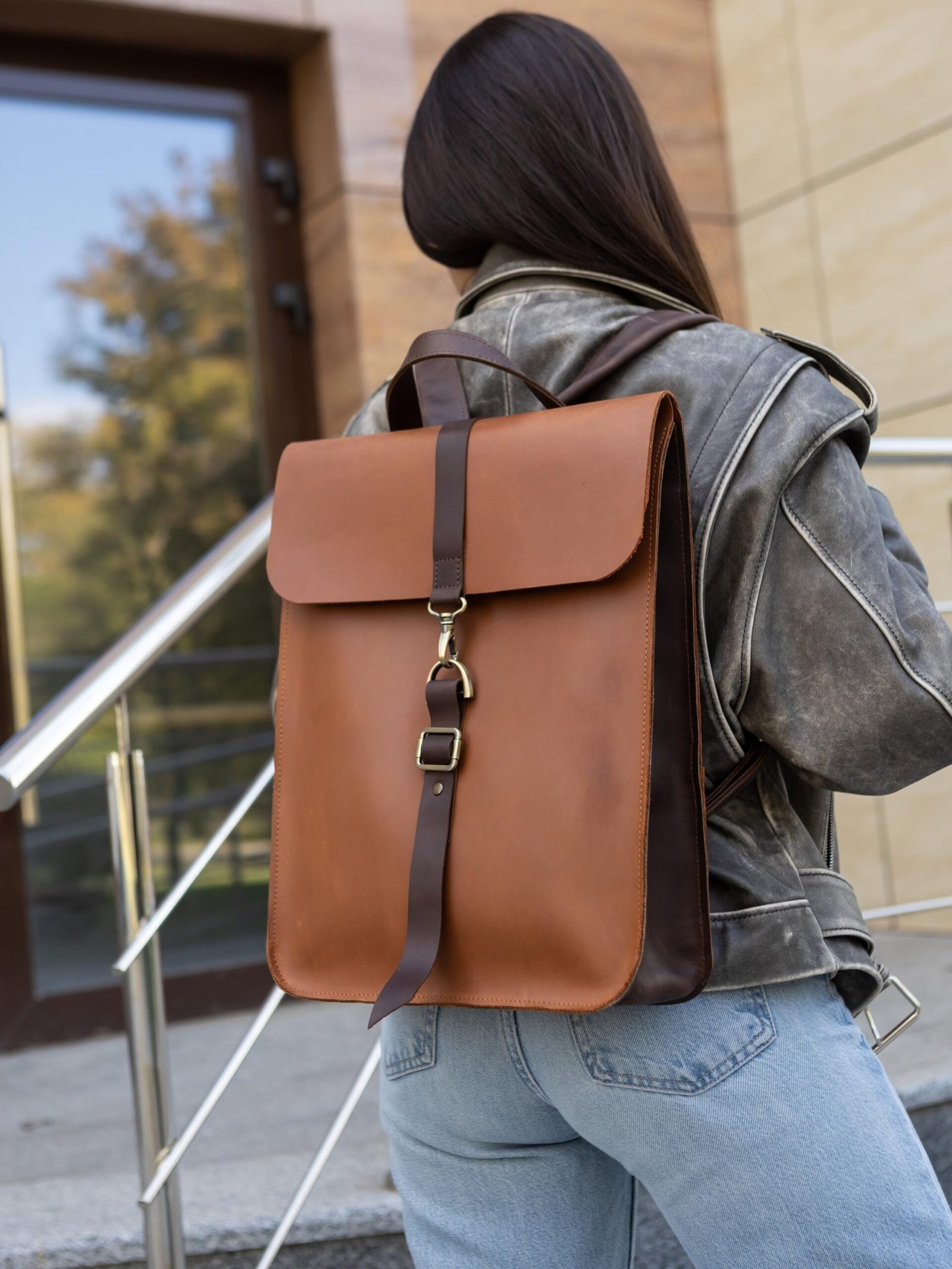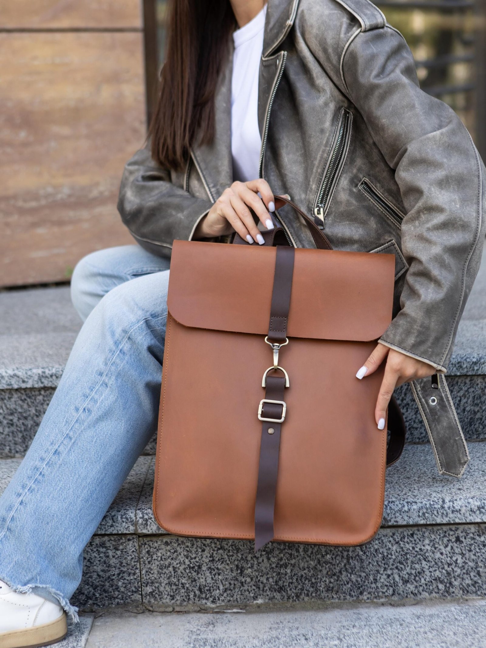 Personalized leather work backpack, women laptop rucksack, casual everyday haversack