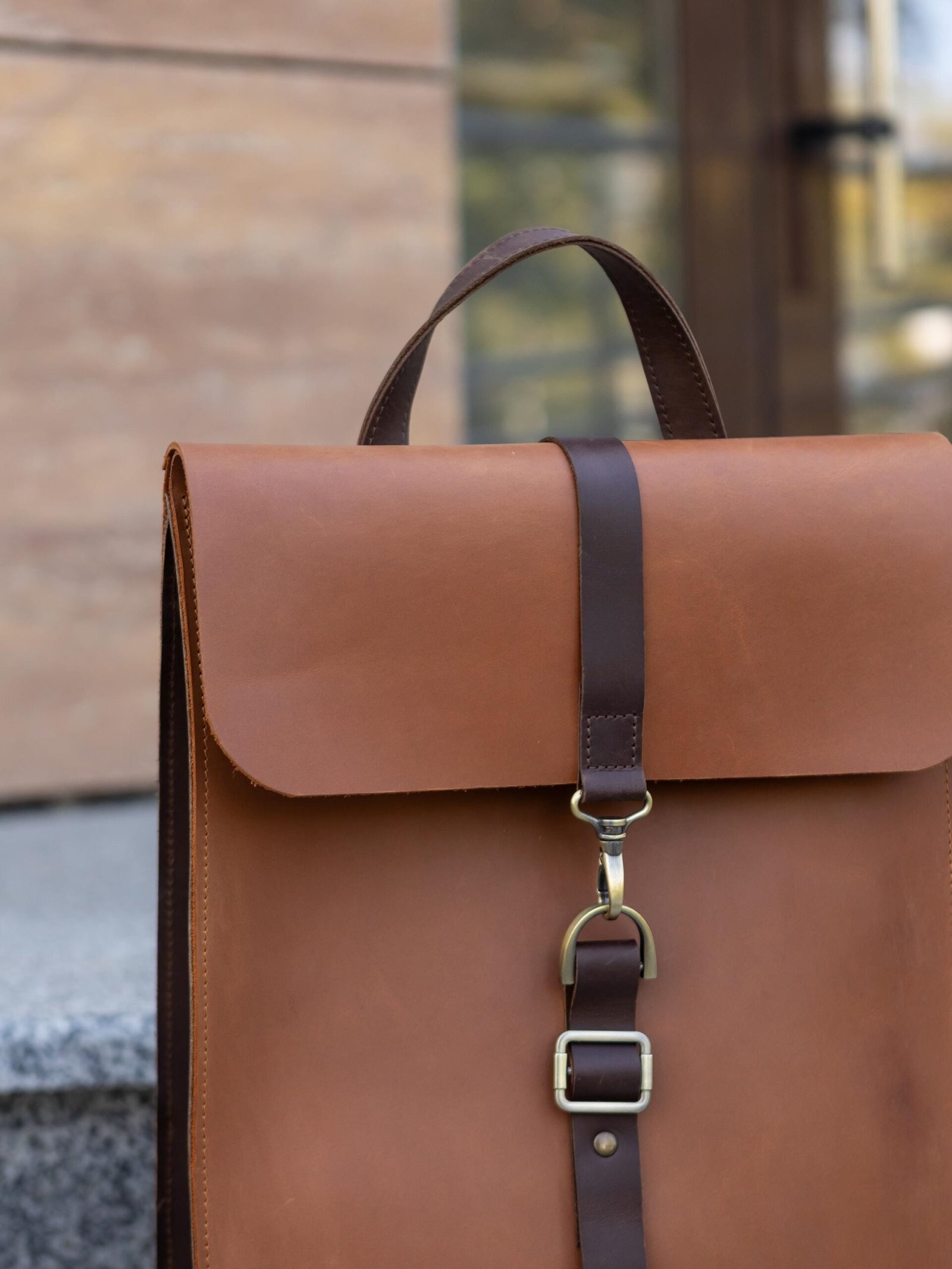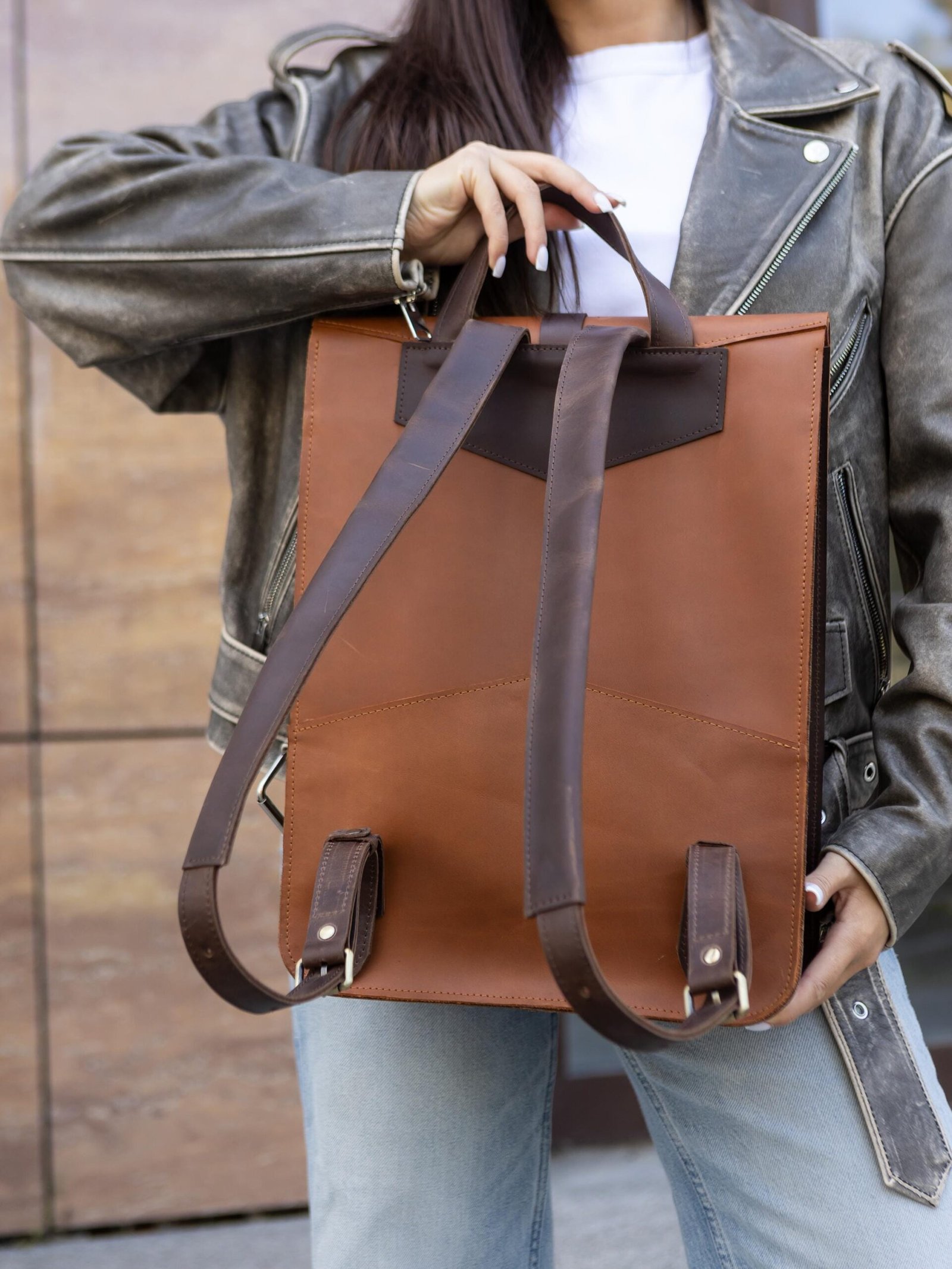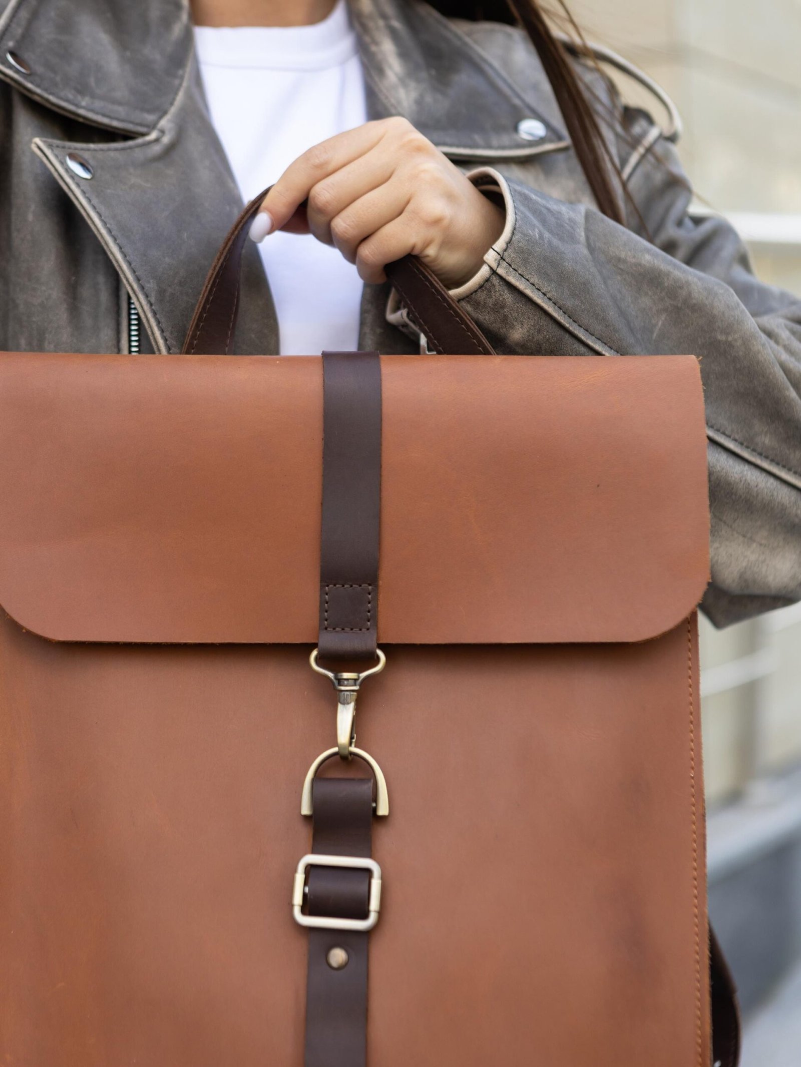 Personalized leather work backpack, women laptop rucksack, casual everyday haversack