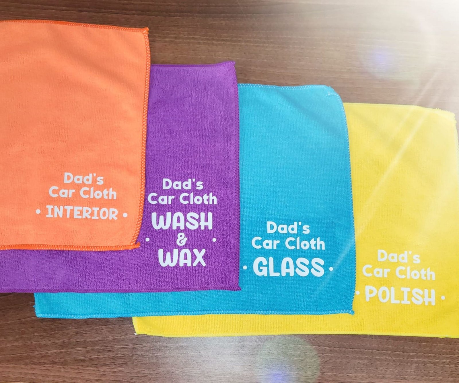Each cloth is designed for a different area of the car and labelled accordingly using a white high quality htv vinyl.