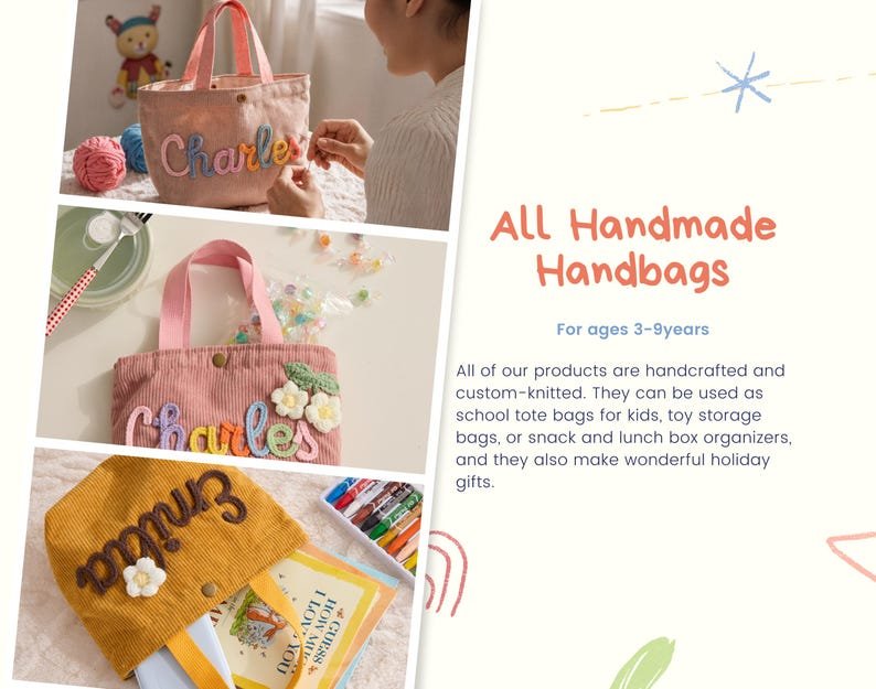 Personalized Name Tote Handbag: Custom Children's Gift,Custom Name Tote Handbag,Baby Shower Gifts, Children's name handbags,Christmas Gift