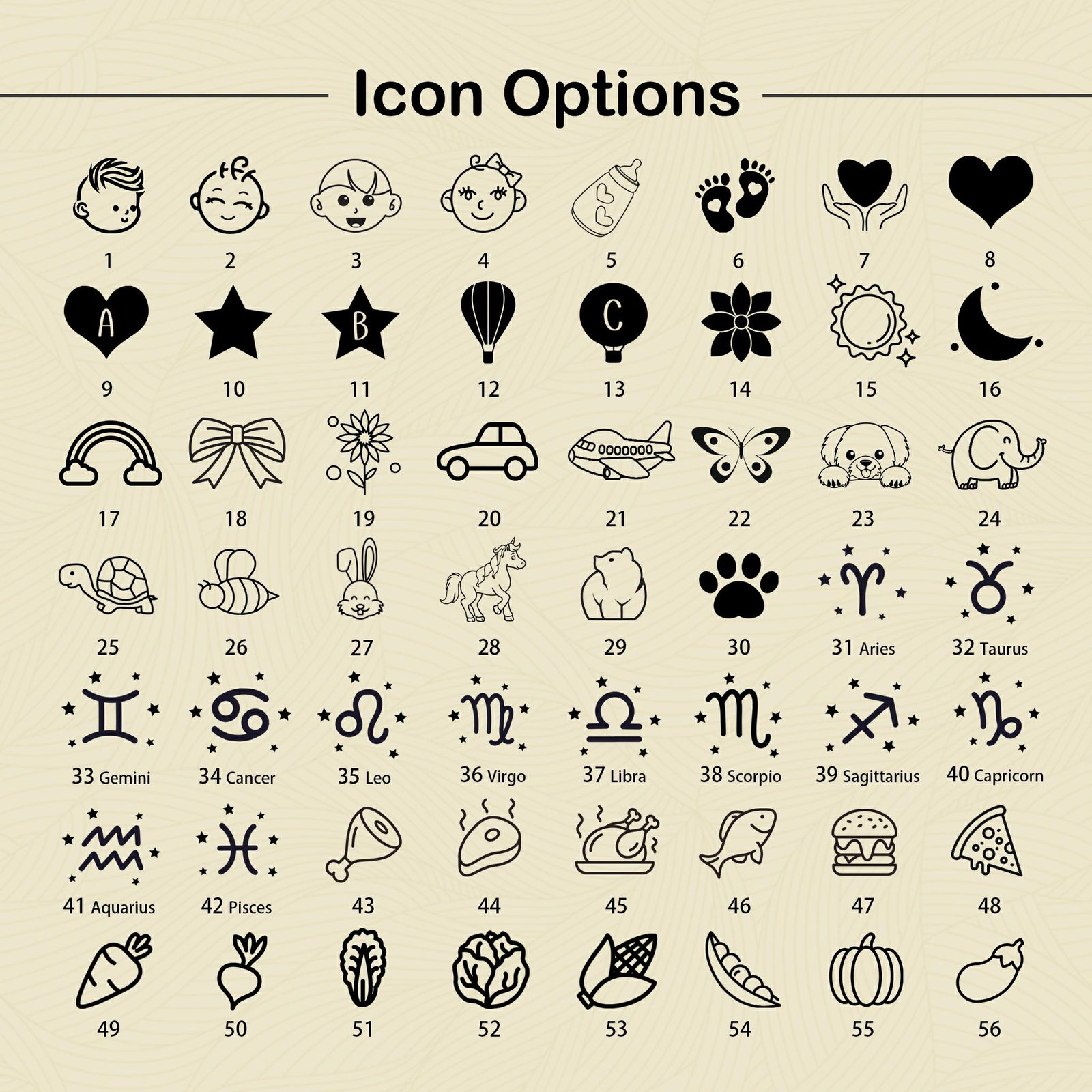 ✓ Personalization: Available in 56 adorable icons & 12 elegant fonts