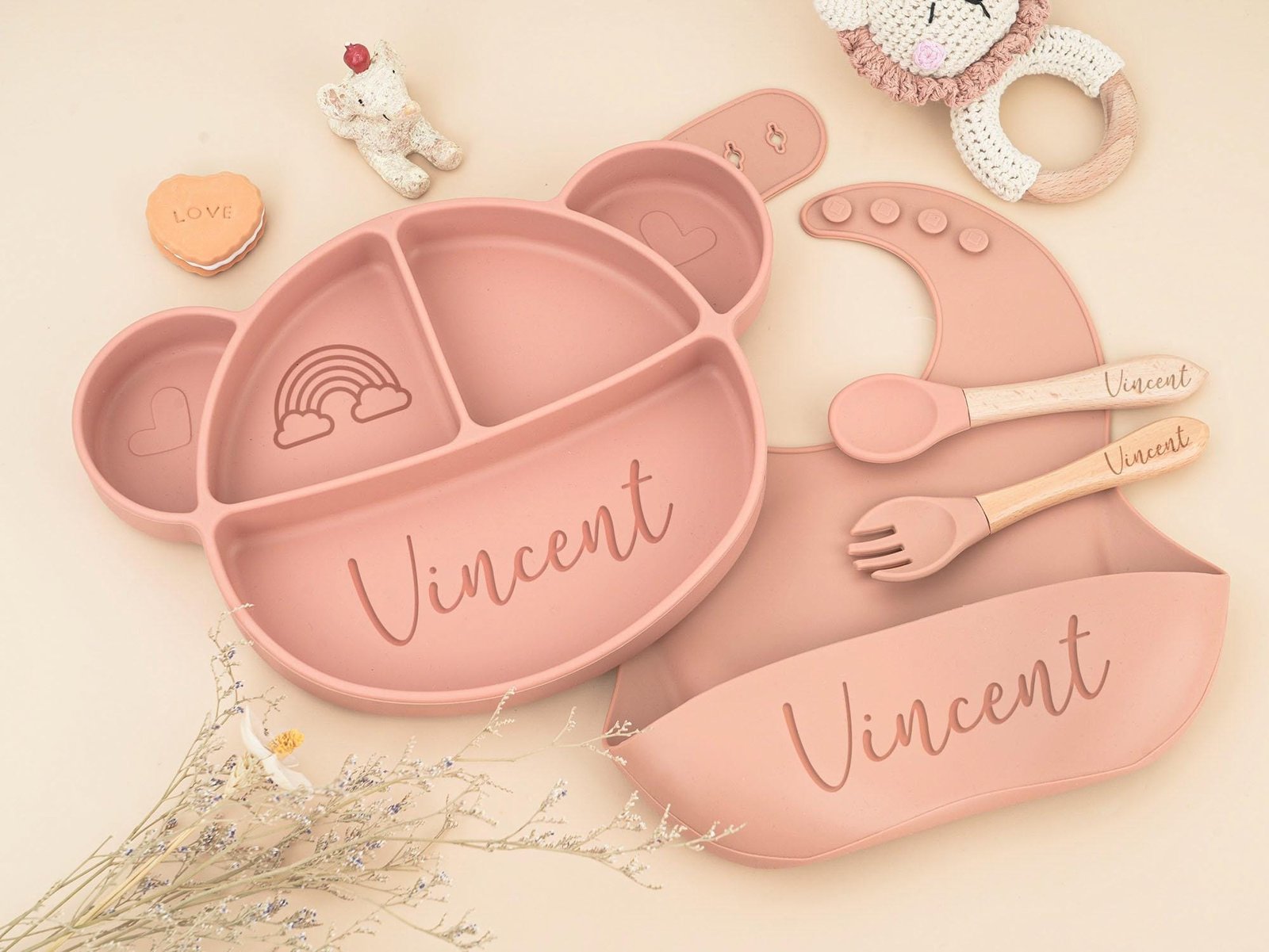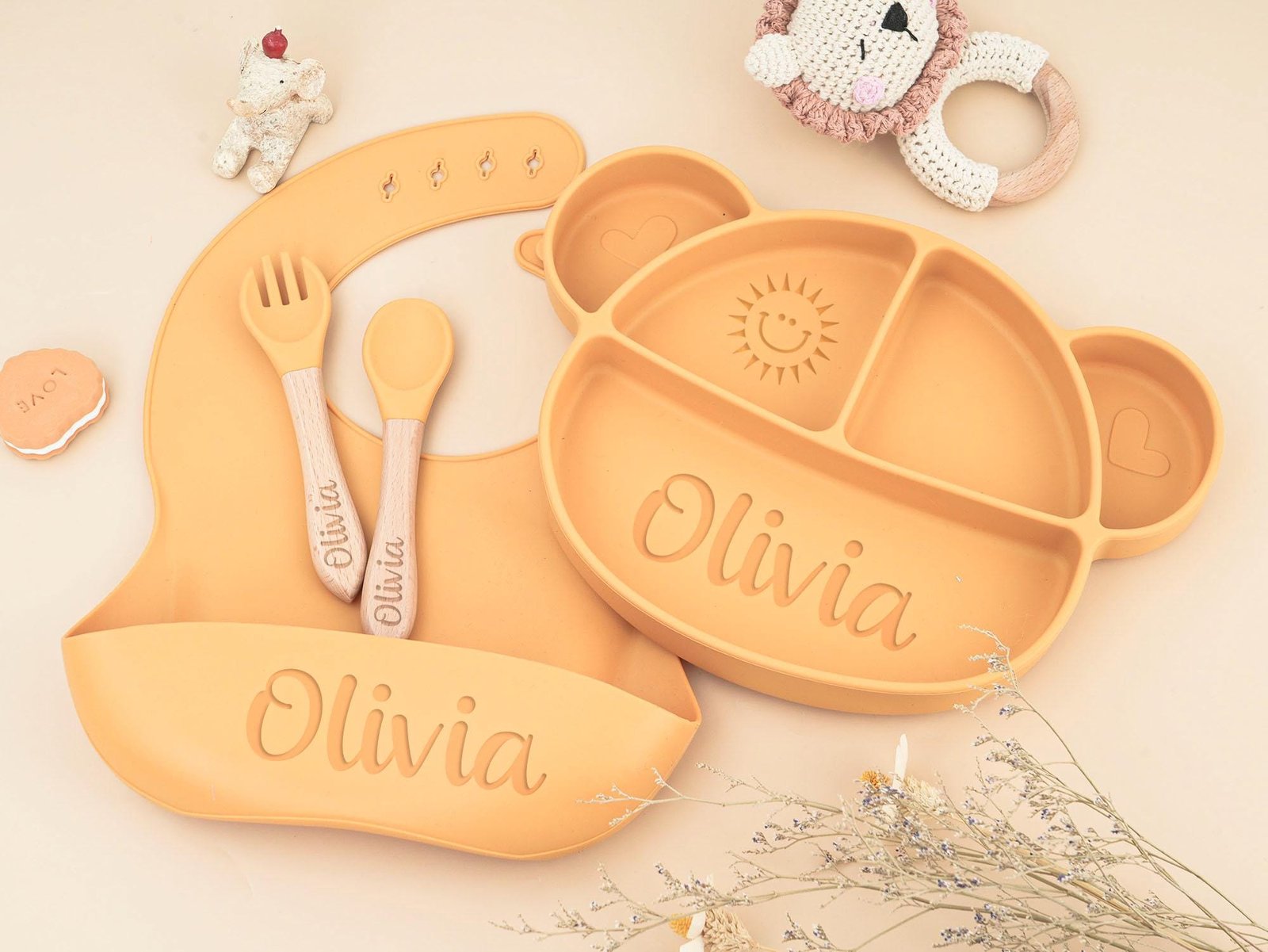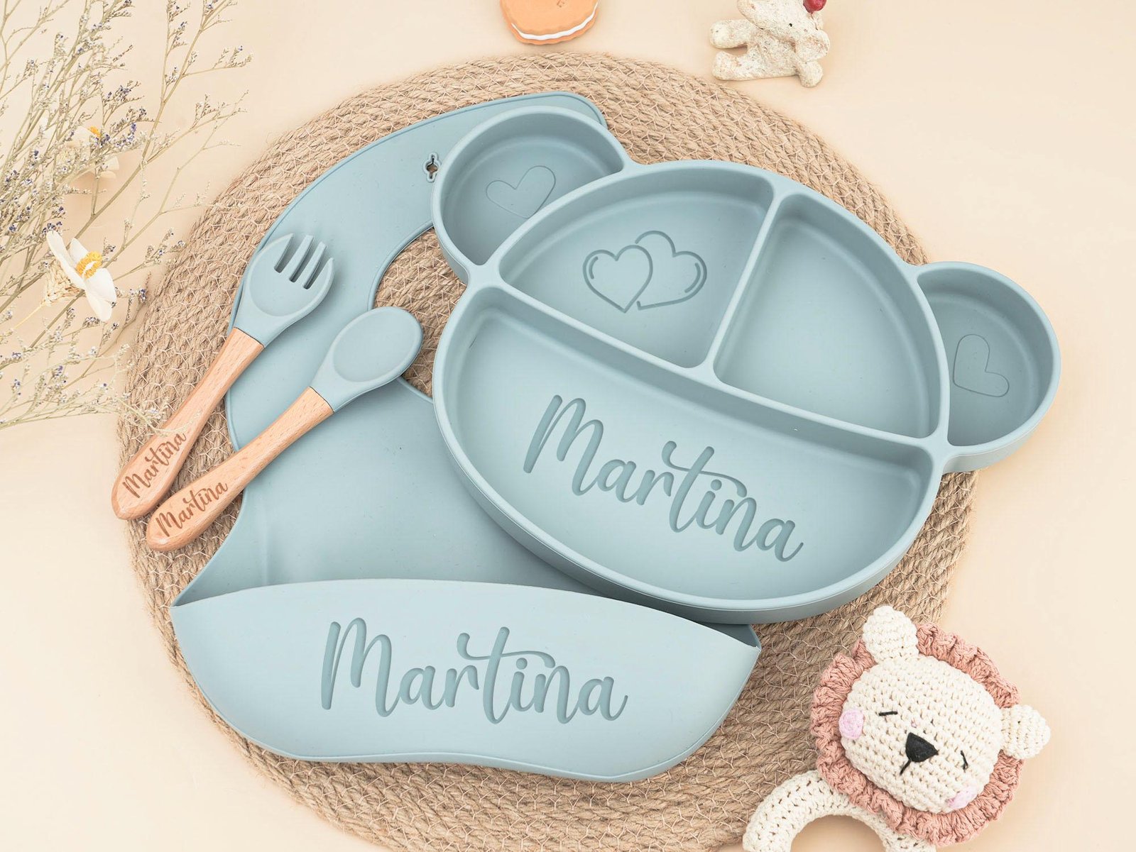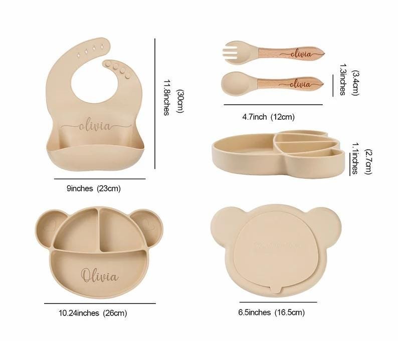 Personalized Silicone Baby Weaning Set: Cartoon Plate, Bib & Utensils