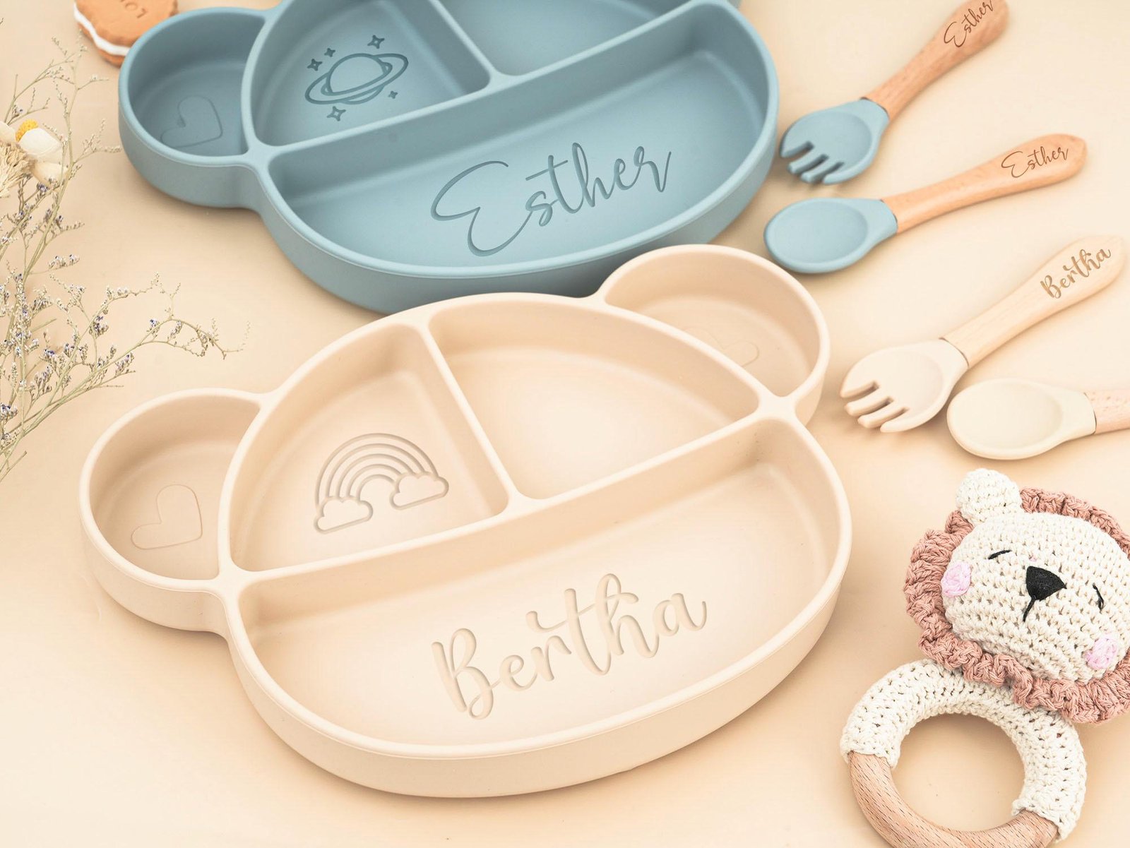 Personalized Silicone Weaning Set, Cartoon Weaning Set for Toddler Baby Kid, Eco-Friendly Baby Plate, Feeding Set With Name,Baby Shower Gift