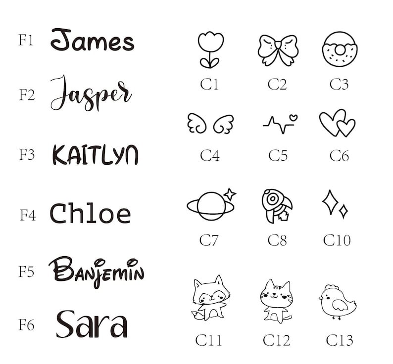 🔺No notes fonts and patterns will be engraved default font 1 and pattern 1.