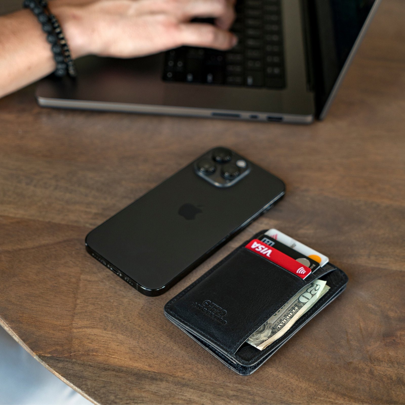 Top Grain Leather Card Wallet for Daily Travel, Hand Crafted Lightweight Card Holder, Ultra Slim Credit Card Wallet Perfect for Suit Pockets