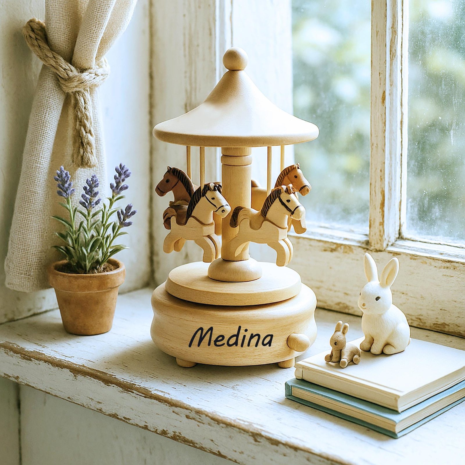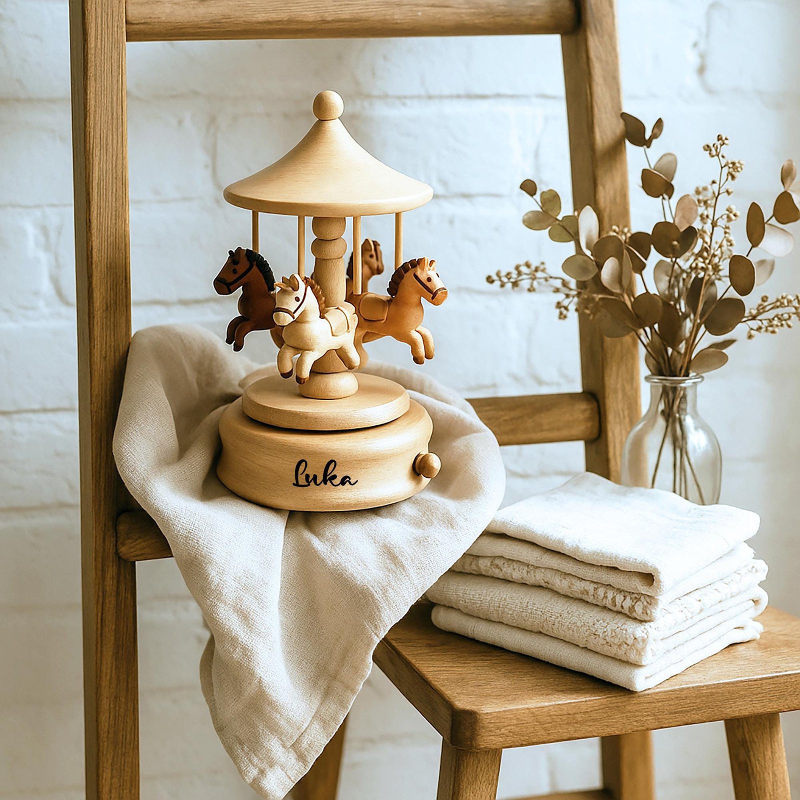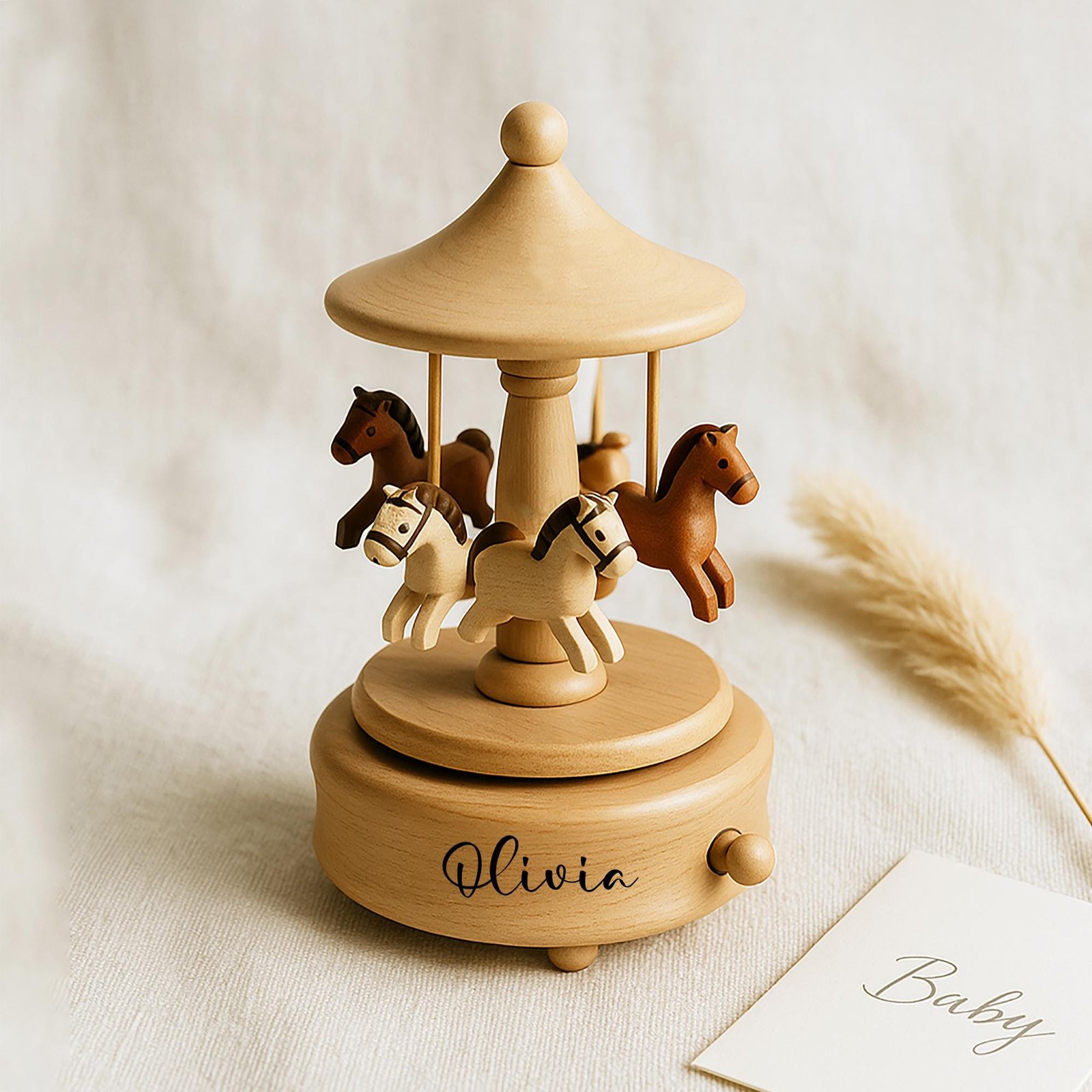 Personalized Wooden Carousel Music Box – Newborn Baby Keepsake