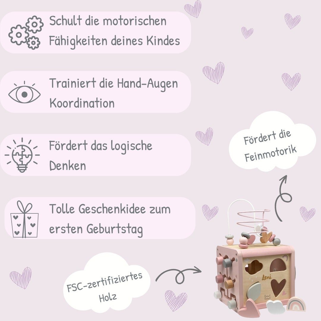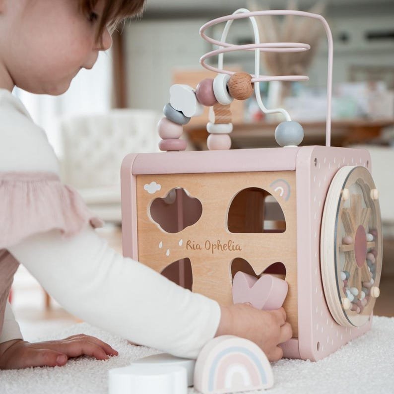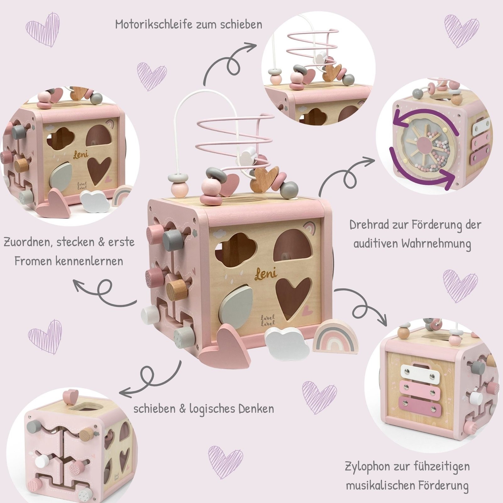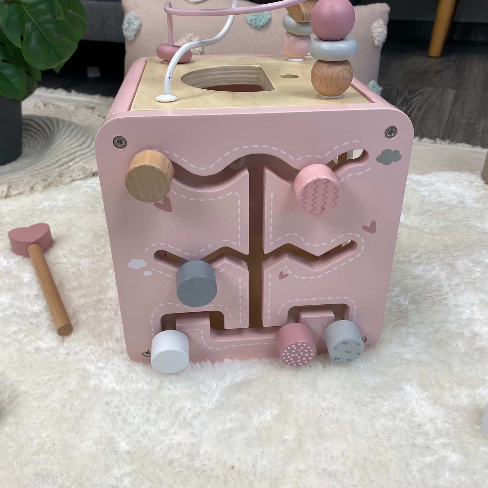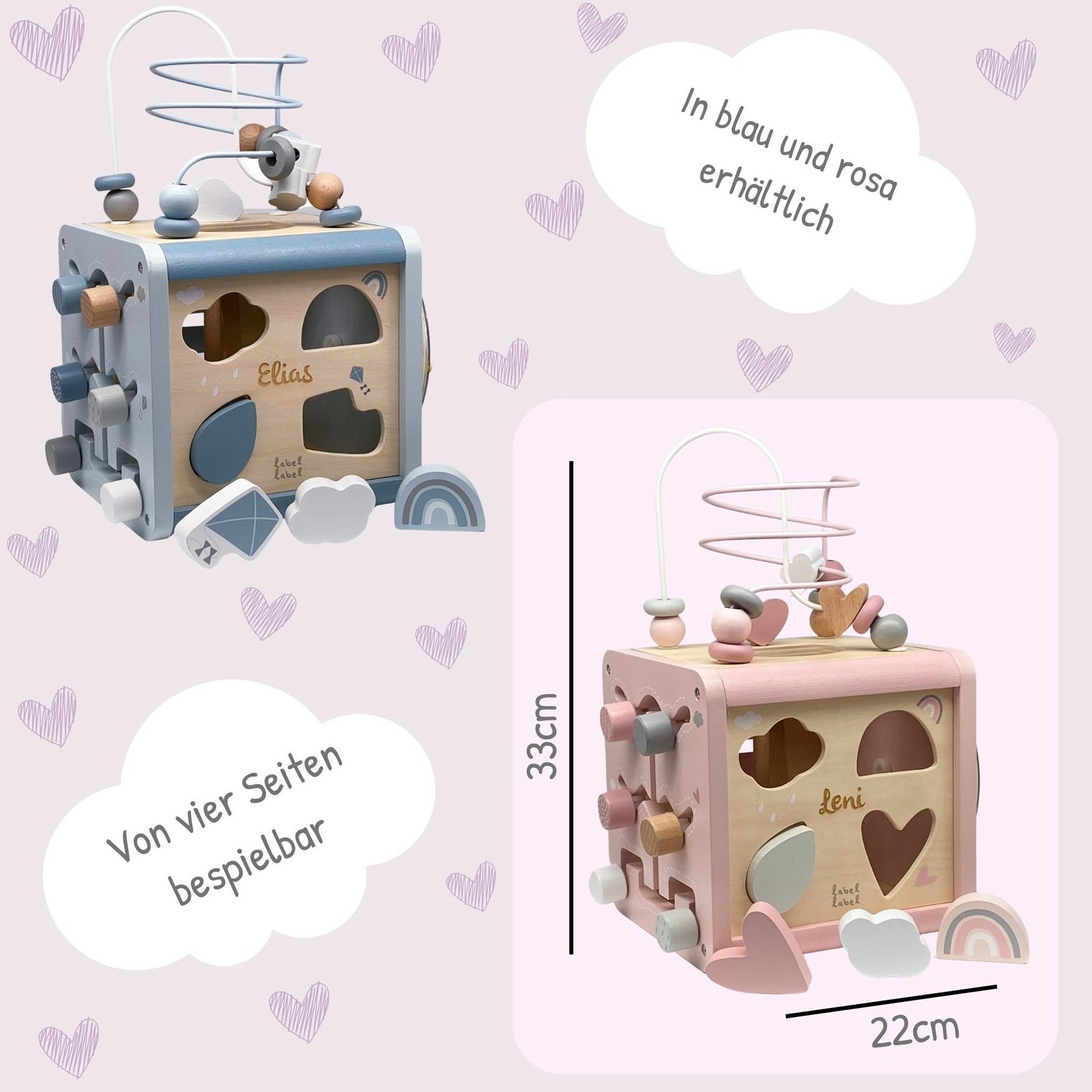 Personalized wooden motor skills cube – Christening gift for girls and boys – Montessori toys – Baby toys – Gift for birth