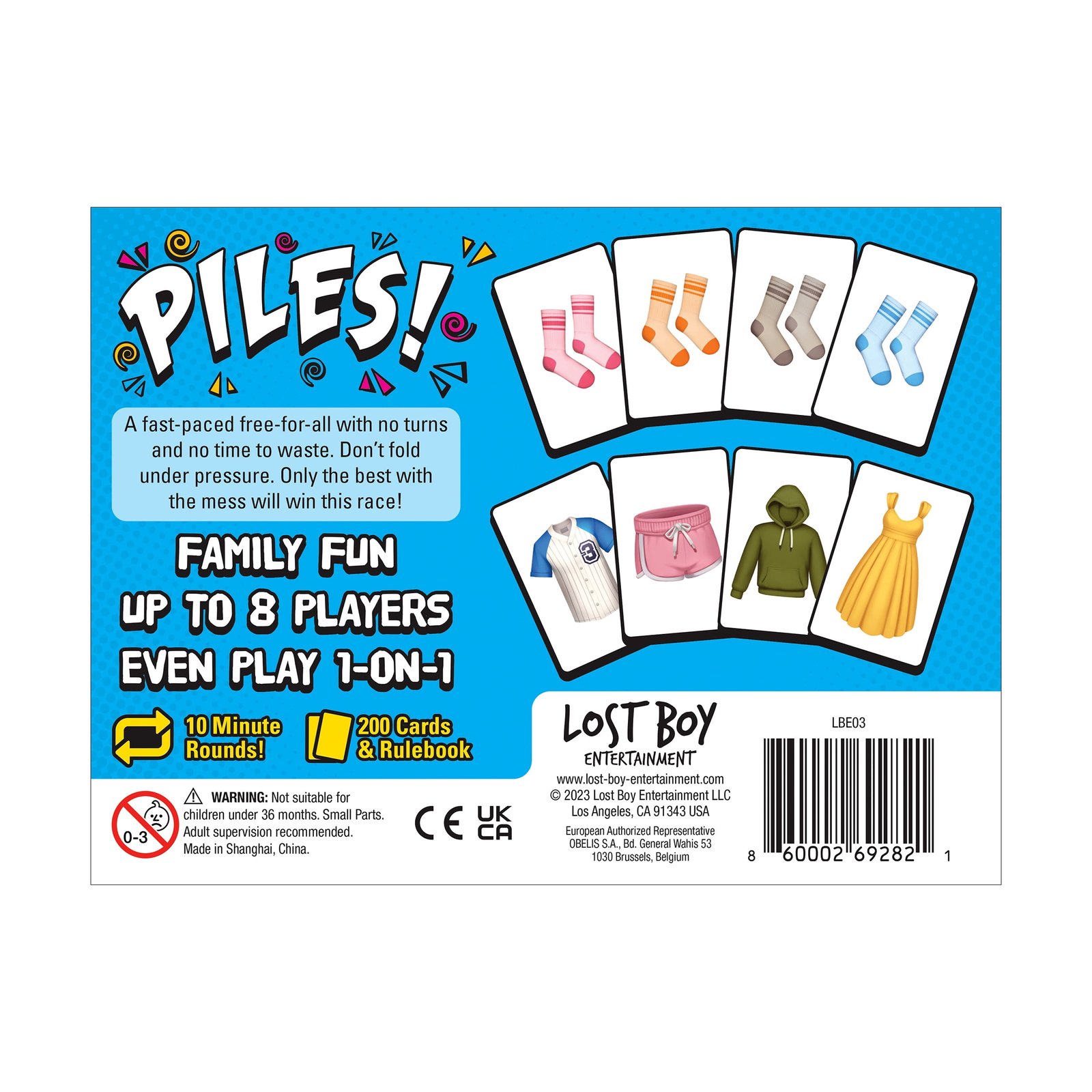 Enjoy the fast-paced excitement of the Lost Boy Entertainment’s Piles. This thrilling 200-card game offers a classic gaming experience reminiscent of Speed and Spoons. Suitable for 2 to 8 players of all skill levels. With an average playtime of under 10 minutes, it’s perfect for casual fun, competitive game nights, or family gatherings. Designed with accessibility in mind, this inclusive card game requires no text, so it’s enjoyable for players from all backgrounds. Gather your friends, snacks, and prepare for a night filled with laughter and chaos as you race to spot and react to your cards.