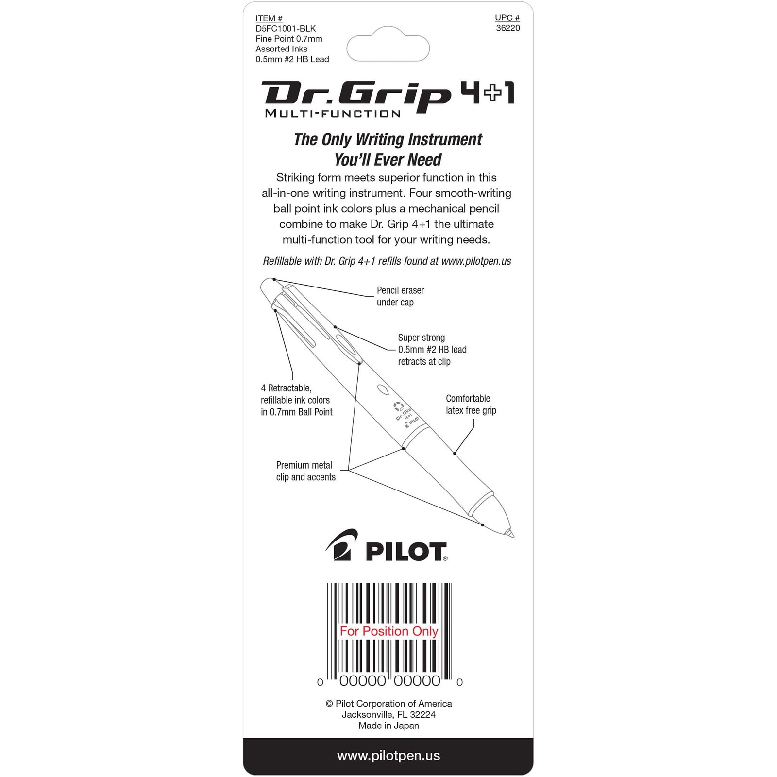 The Pilot Dr. Grip 4+1 Ballpoint Pen and Mechanical Pencil is a versatile writing instrument designed for comfort and convenience. Featuring a latex-free, wide grip that helps alleviate writing fatigue, this all-in-one pen offers smooth-writing, fast-drying ink in four colors Black, Blue, Red, and Green with a medium 1.0mm point. The mechanical pencil includes strong #2 HB lead with a 0.5mm point and a concealed eraser. Endorsed by the Arthritis Foundation for Ease-of-Use, this retractable and refillable pen is perfect for everyday writing tasks.