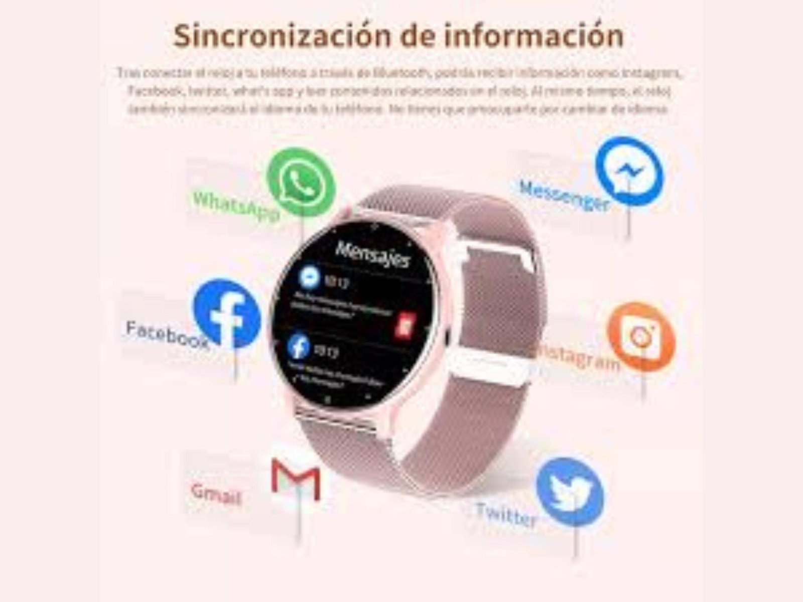 Pink Smartwatch for Women, Elegant Metal Bracelet