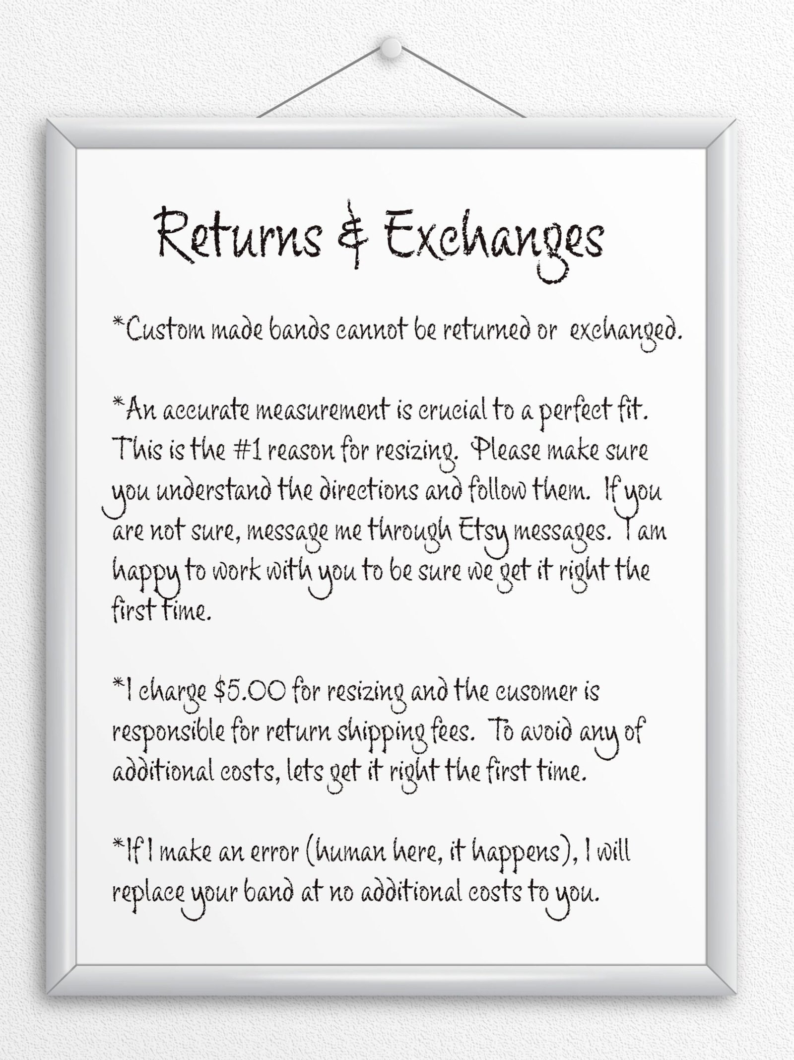 If you are uncomfortable measuring your wrist, snap a picture add a note to the seller, and send me the image in messenger. I am happy to help so we get your band right the first time!