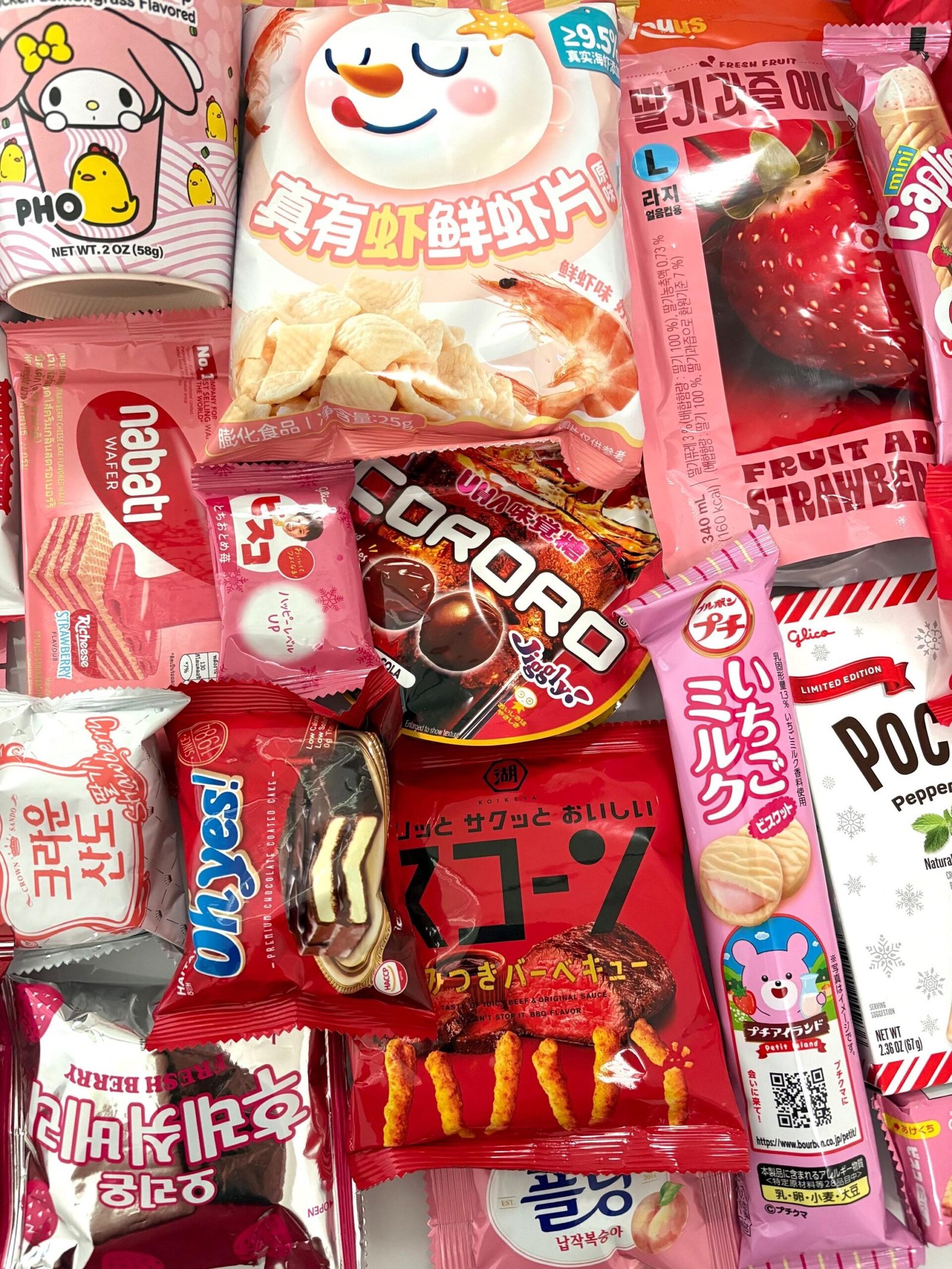 Dive into the vibrant world of Asian snacks! Our Pink/Red snack box offers a delightful assortment of treats. Perfect as a gift or for personal enjoyment, it’s a colorful choice for any occasion.