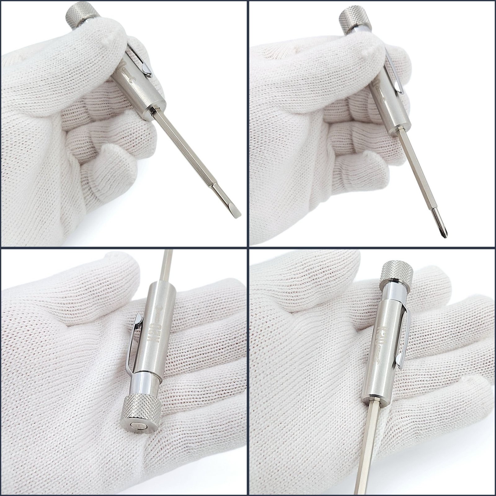 Pocket Screwdriver with Clip and Magnet – Phillips and Flat Head – Small Tool, Magnetic Tip Stainless Steel