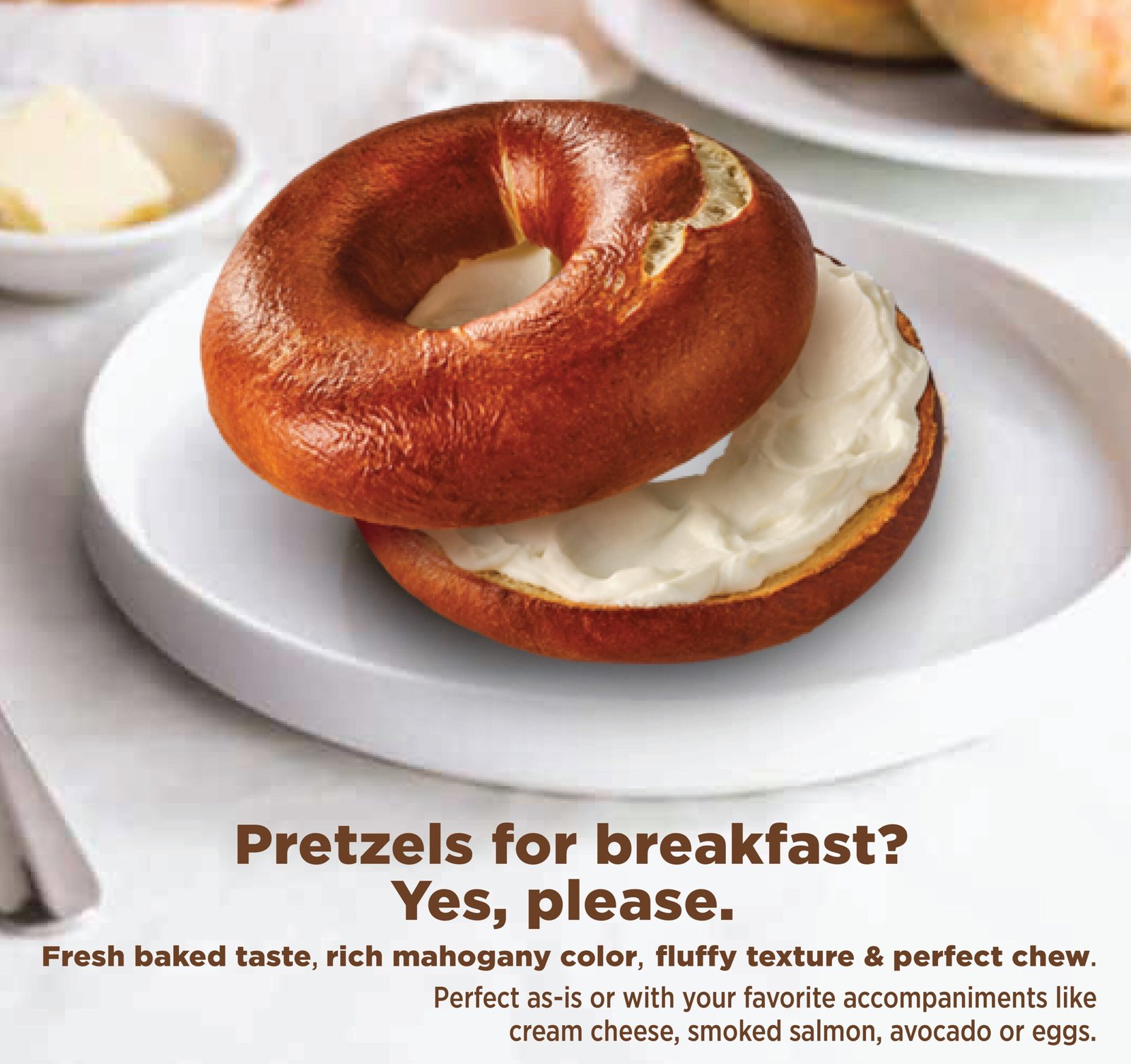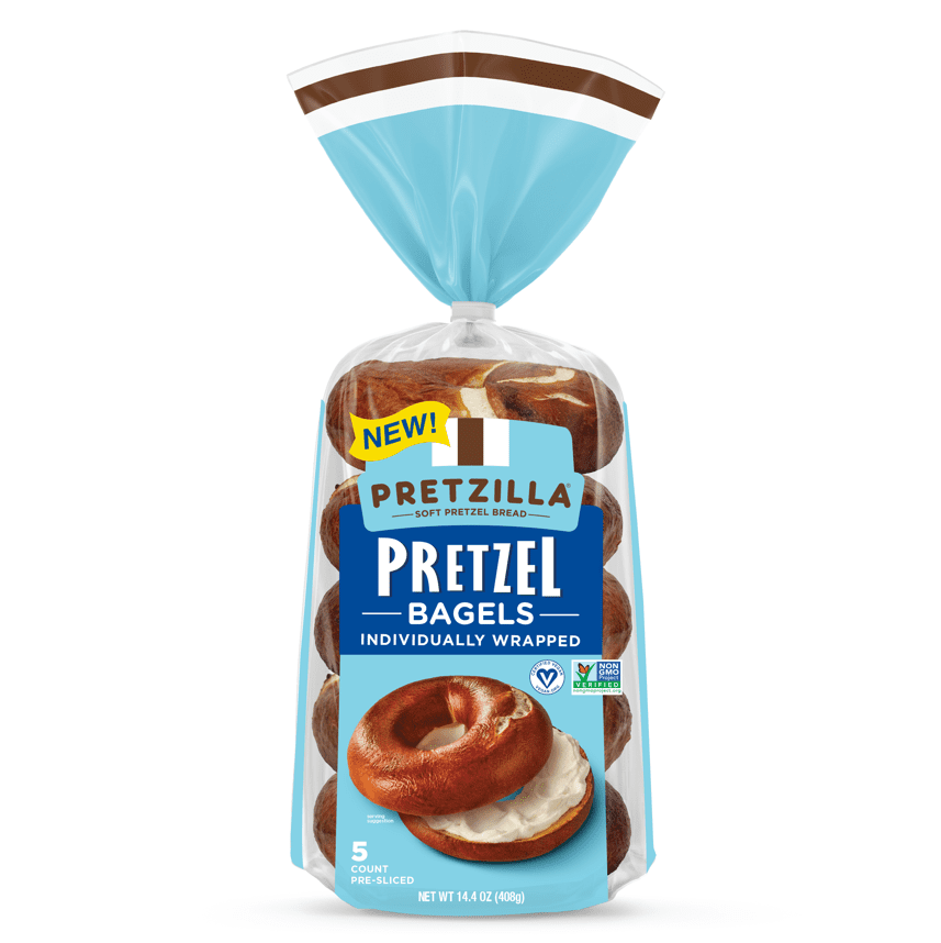 Every day at Pretzilla®, we wake up excited to bake fresh soft pretzels that deliver authentic pretzel flavor using the same high-quality recipes we’ve used for over a century right here in Wisconsin. And when you love pretzels as much as we do, you’re always dreaming up new ways to eat them. Pretzels for breakfast? Yes, Please. And while we’re at it, let’s make breakfast quick, easy and tasty by individually wrapping our Pretzilla soft pretzel bagels so you can grab and go. Perfect as-is or with your favorite accompaniments like smoked salmon, avocado or eggs, Pretzilla’s rich pretzel flavor makes for the perfect bite. You’ll recognize Pretzilla® soft pretzel bagels by our fresh baked taste, rich mahogany color, fluffy texture and perfect chew. America’s #1 Soft Pretzel Bread! Real pretzel flavor because it is. NEVER contains artificial flavors, colors, or high fructose corn syrup. Visit Pretzilla.com to learn about our other pretzel creations!