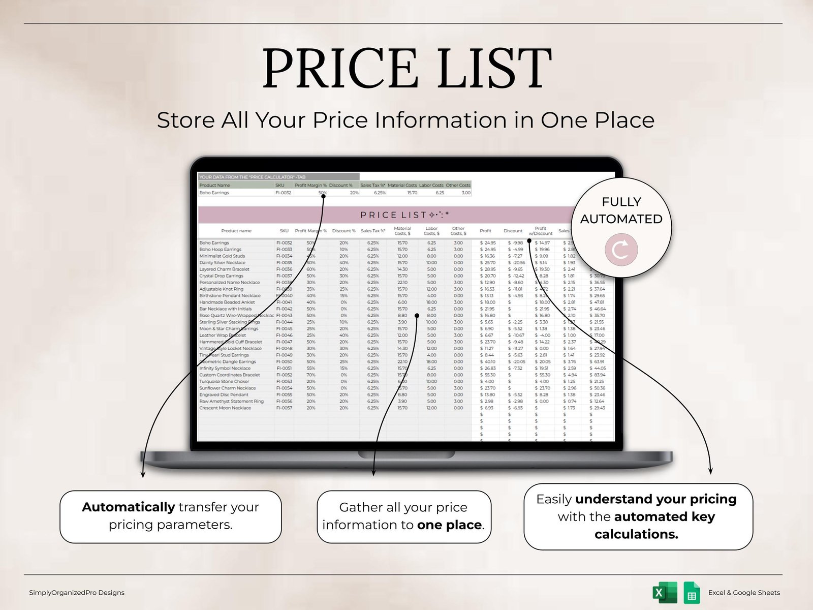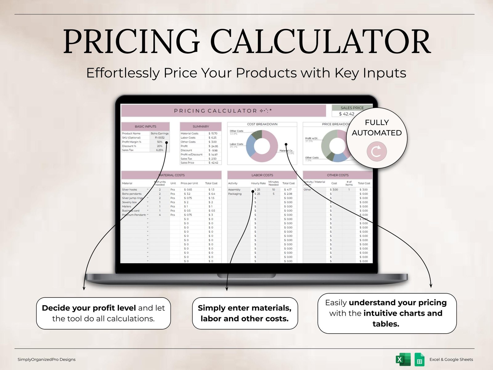 Pricing Calculator for Small Business Product Cost & Profit Margin Template Excel Google Sheets Pricing Guide Handmade Products Profit Calc