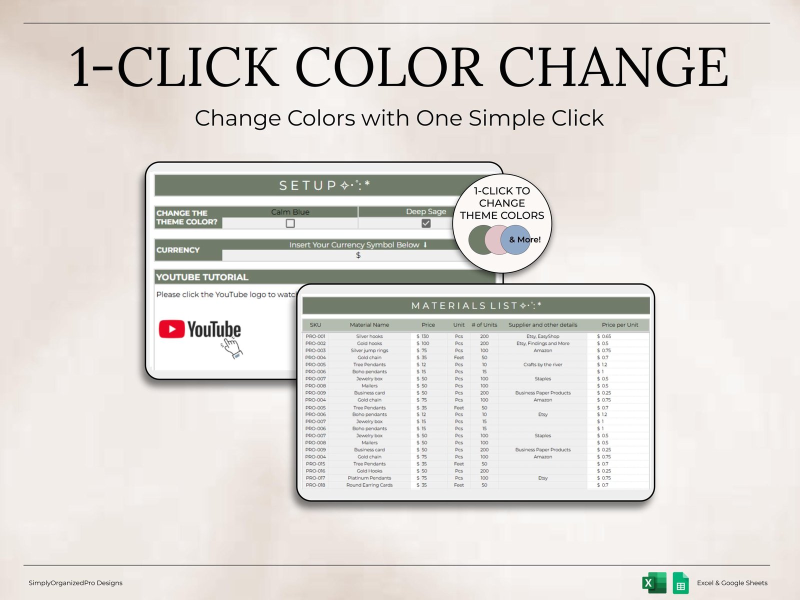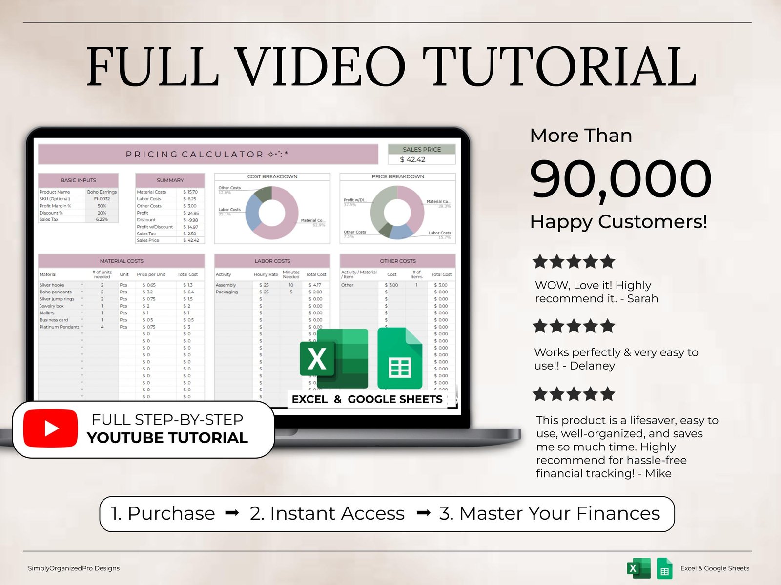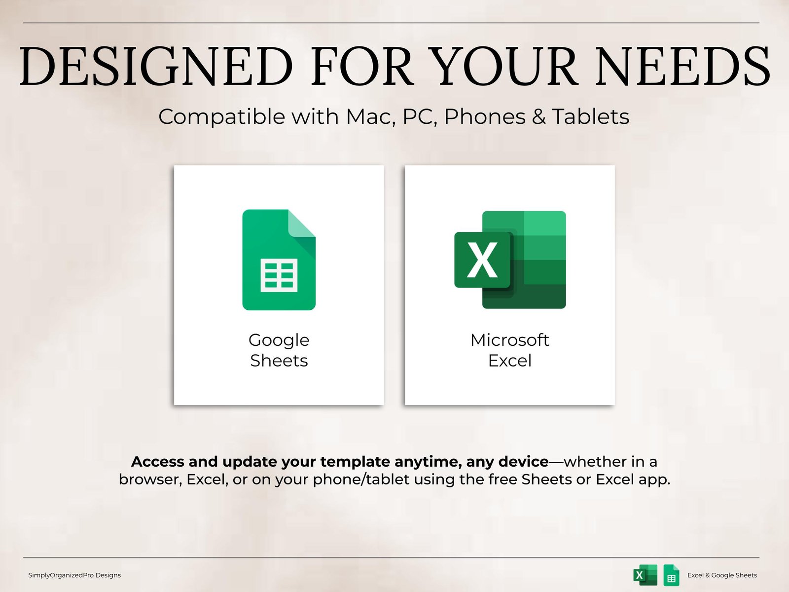 Access immediately after purchase with Excel and/or Google Sheets.
