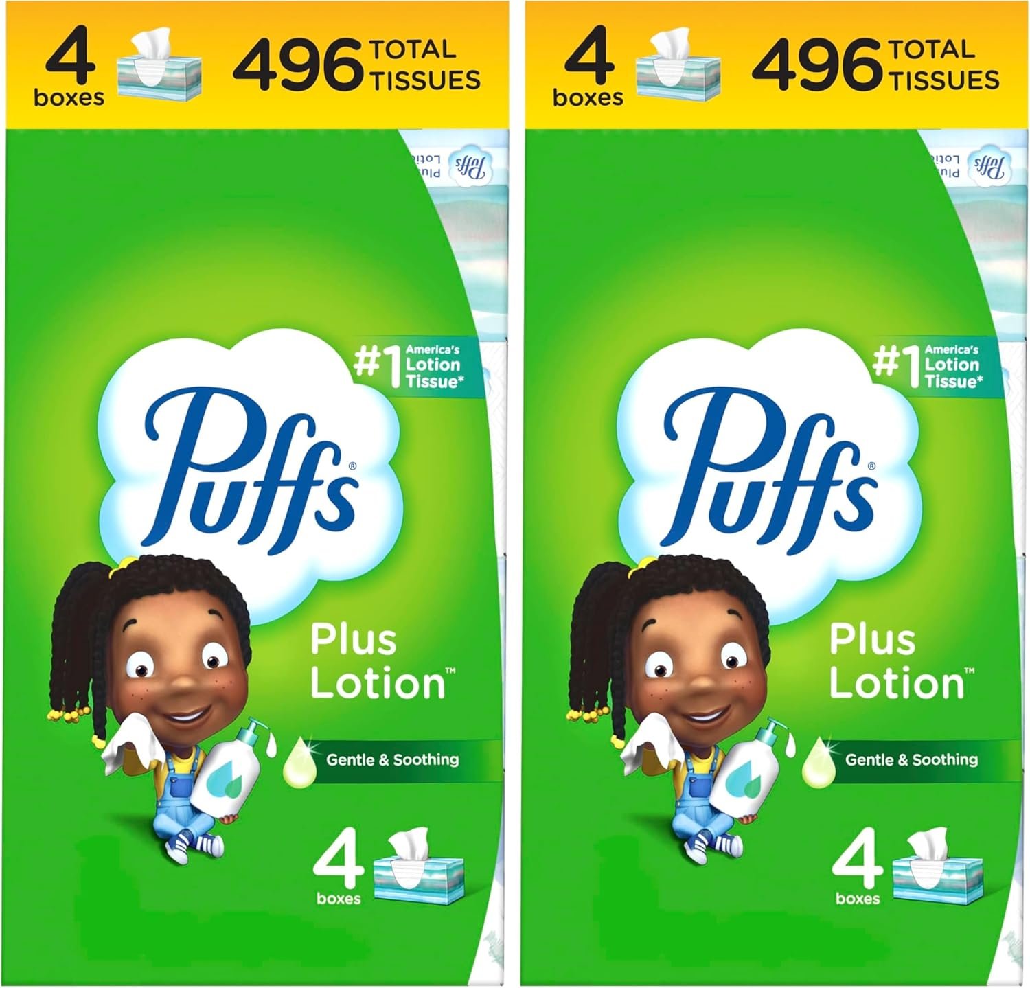 Pack includes 8 Family Boxes 124 Tissues Per Box of Puffs Plus Lotion Facial Tissues