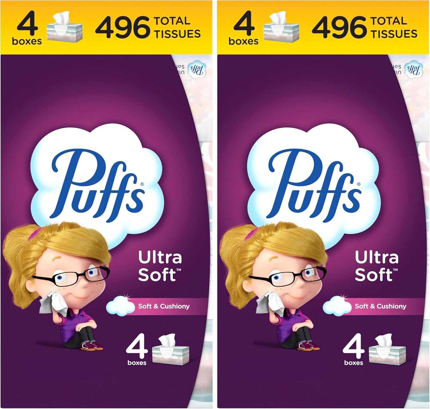 Pack includes 8 Family Boxes 124 Tissues Per Box of Puffs Ultra Soft Facial Tissues