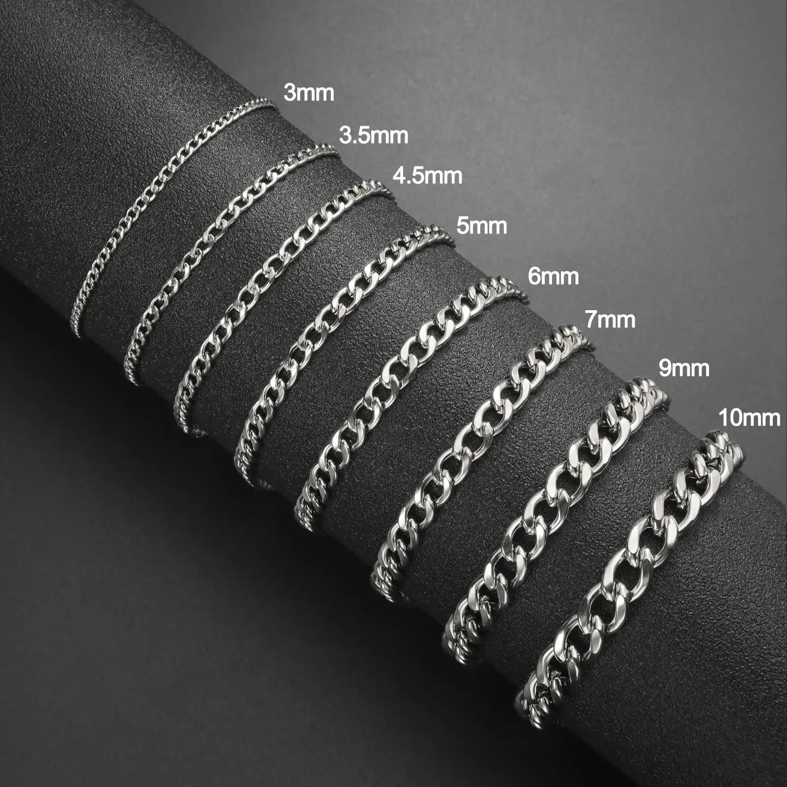 Punk Cuban Chain 3-10mm Wide Minimalist Bracelet Men Women Stainless Steel Gold Color Basic Hip Hop Figaro Chain Jewelry Gift