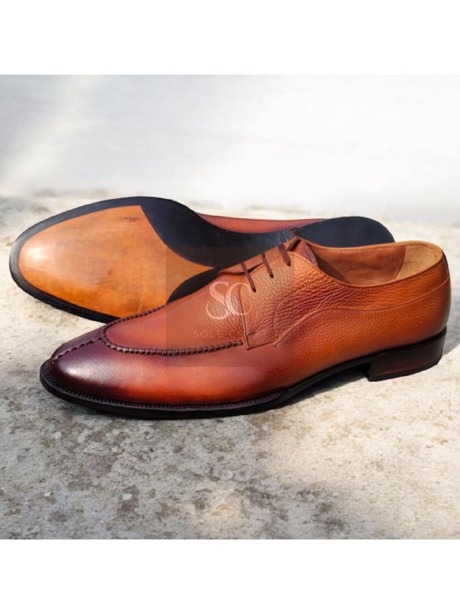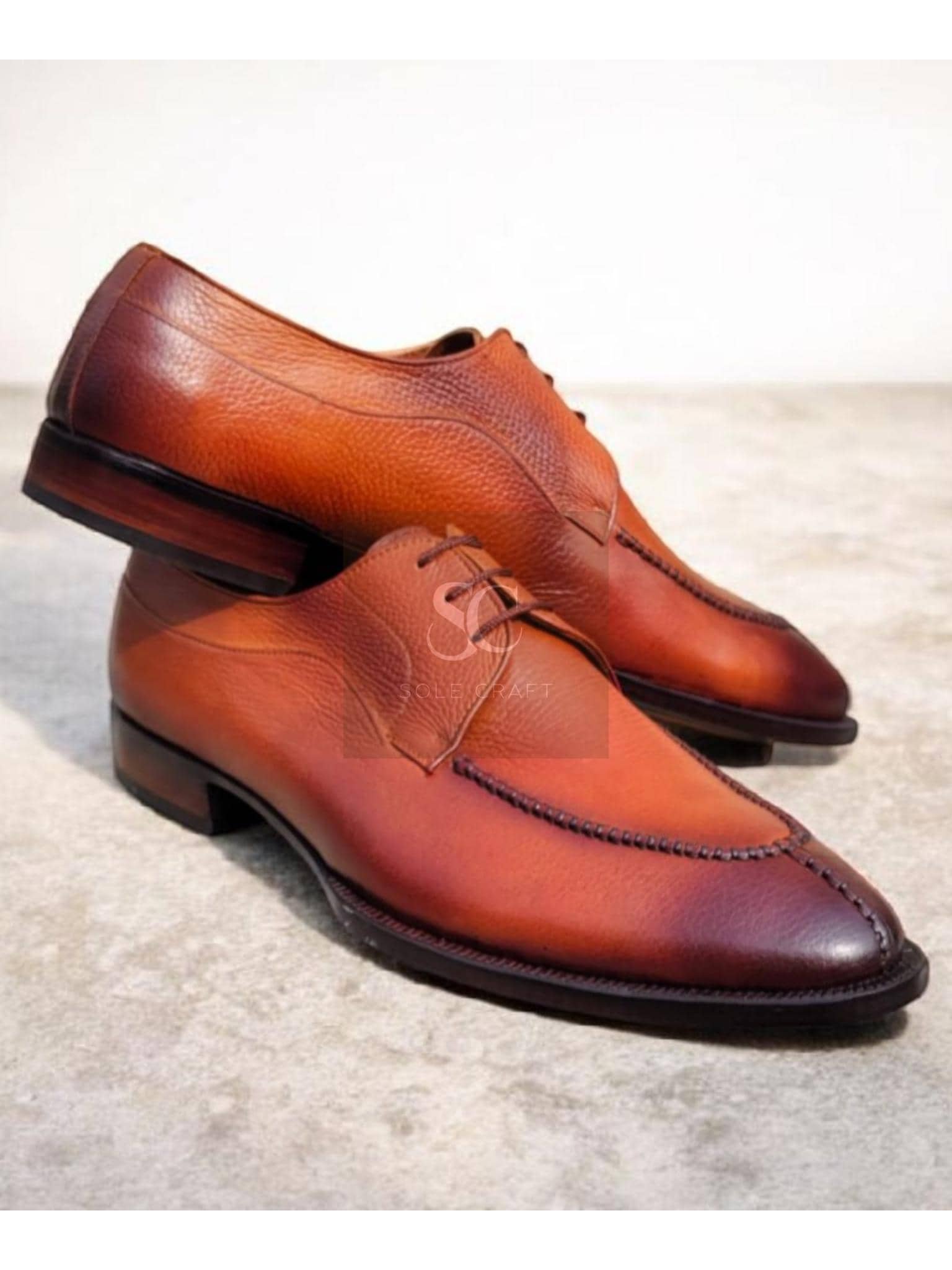 Pure Handmade Brown Leather Lace up Derby Dress Formal Shoes