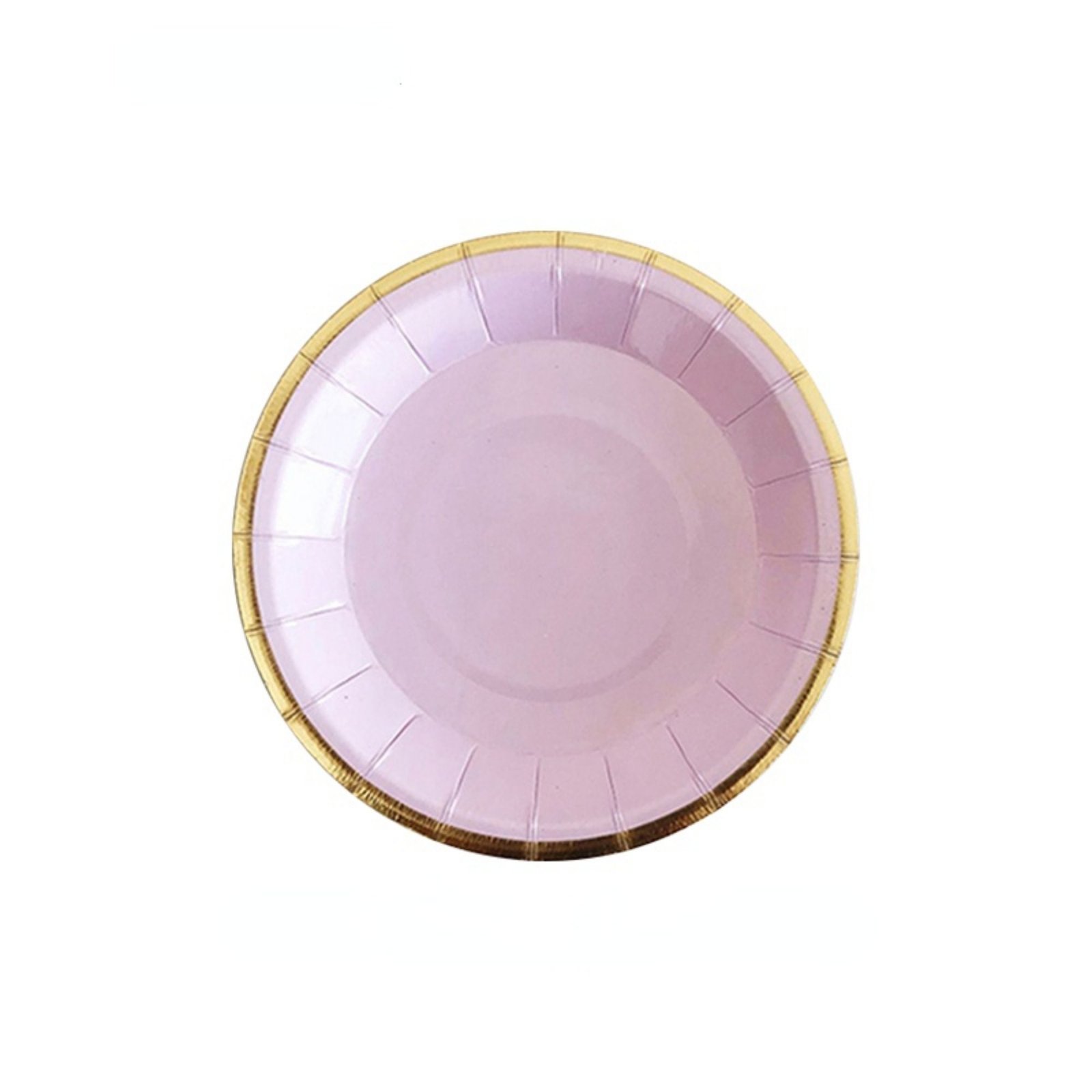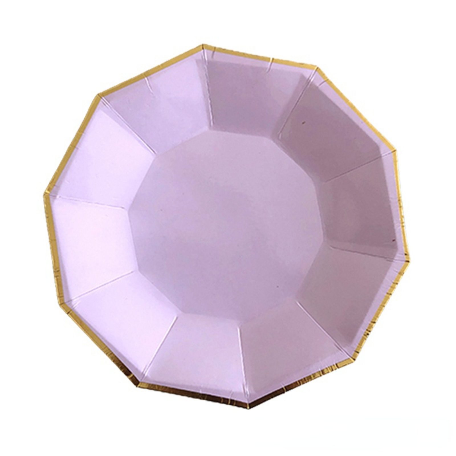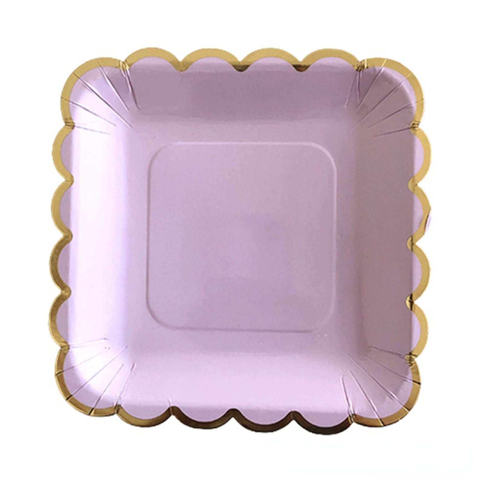 Purple Gold Party Tableware Disposable Paper Plates Cups Napkins Cutlery Solid Wave Square Birthday Party Supplies Dinnerware Decoration Set