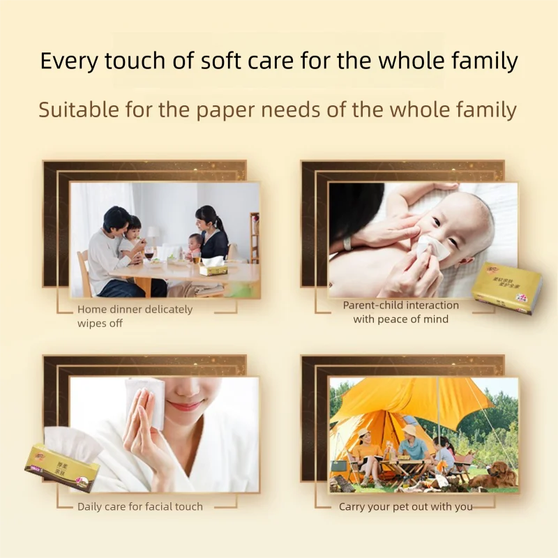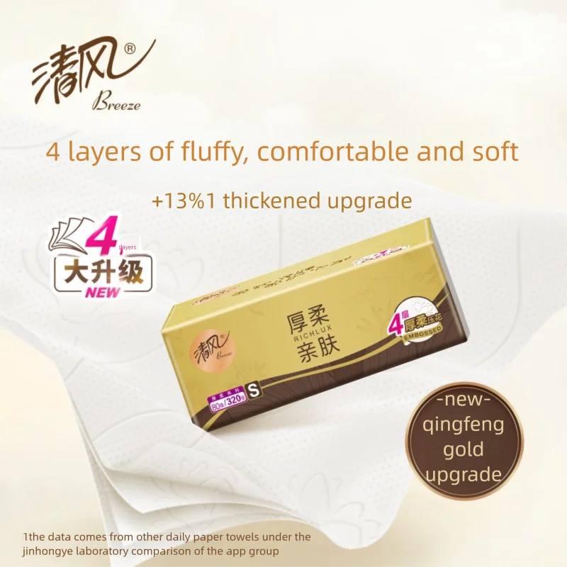 Qingfeng Tissue Paper Gold Log Thick and Soft 80 Sheets 4 Layers 20 Packs of Paper Towels Napkins Facial Tissue Paper Full Box Affordable Package