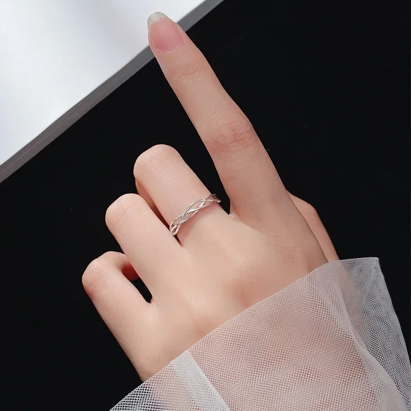 Real 925 Sterling Silver Cross Line Geometric Adjustable Rings for Women Light luxury Fine Jewelry Minimalist Accessories