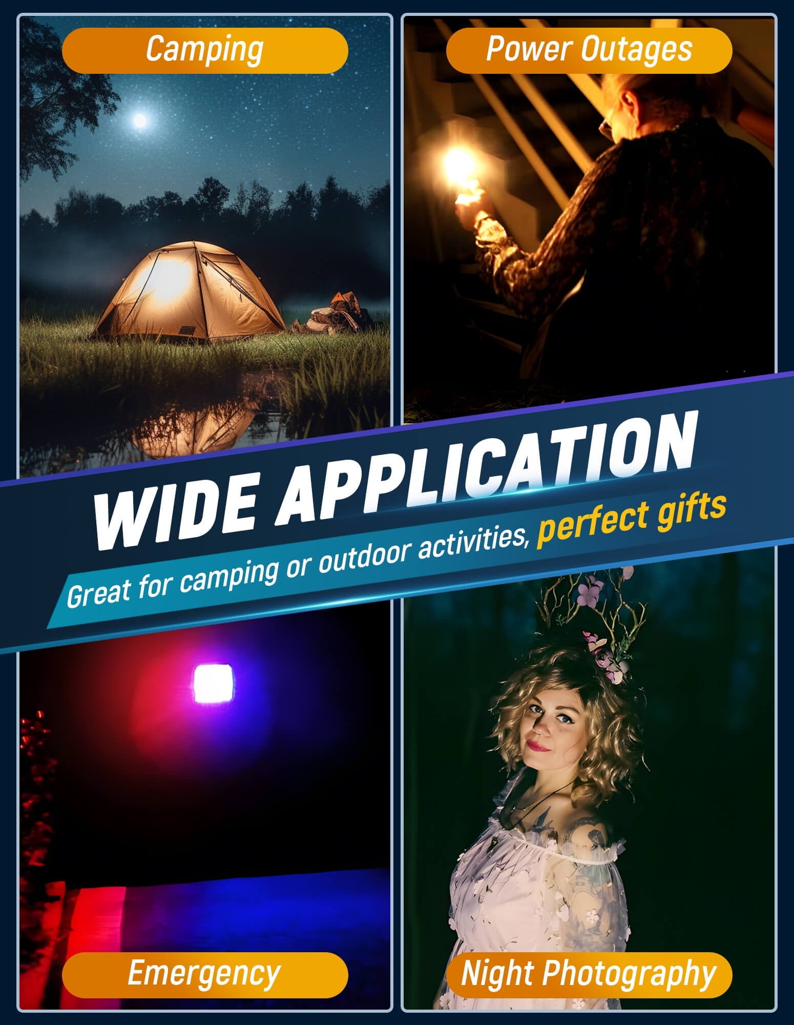 The USB rechargeable flashlight is powered by 2*18650 built-in rechargeable Li-ion batteries to make sure it can provide you 2-4 hours long-lasting working time. Other than quick and easy changes, the portable camping flashlight also equipped with a USB-A port which can be used as an emergency power bank for your camera, mobile phone etc. - 3 + 4 Lights Modes