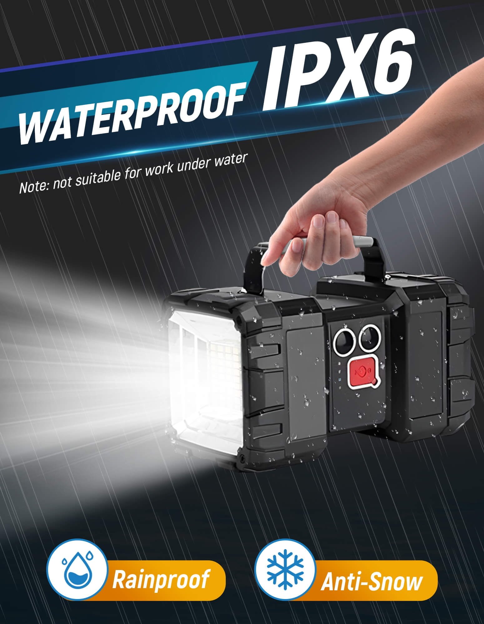 Made from high-quality ABS and Rubber waterproof plug to protect the flashlight from scratch, bumps and water splash. No need to worry if If you experience light rain while hiking, camping, fishing or hunting. NOTE: Submersion is not recommended - Portable Lightweight & Comfortable to Hold