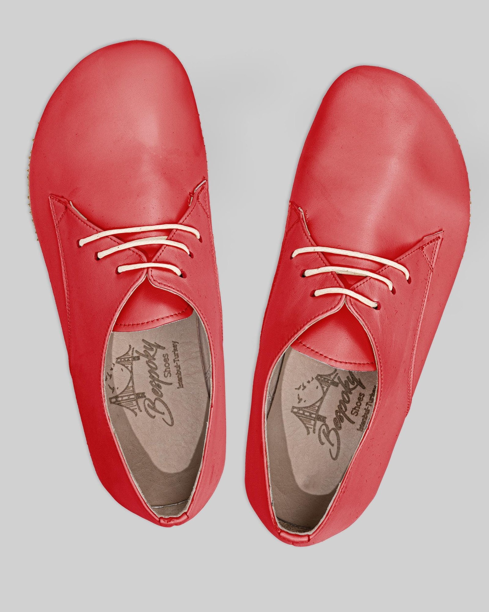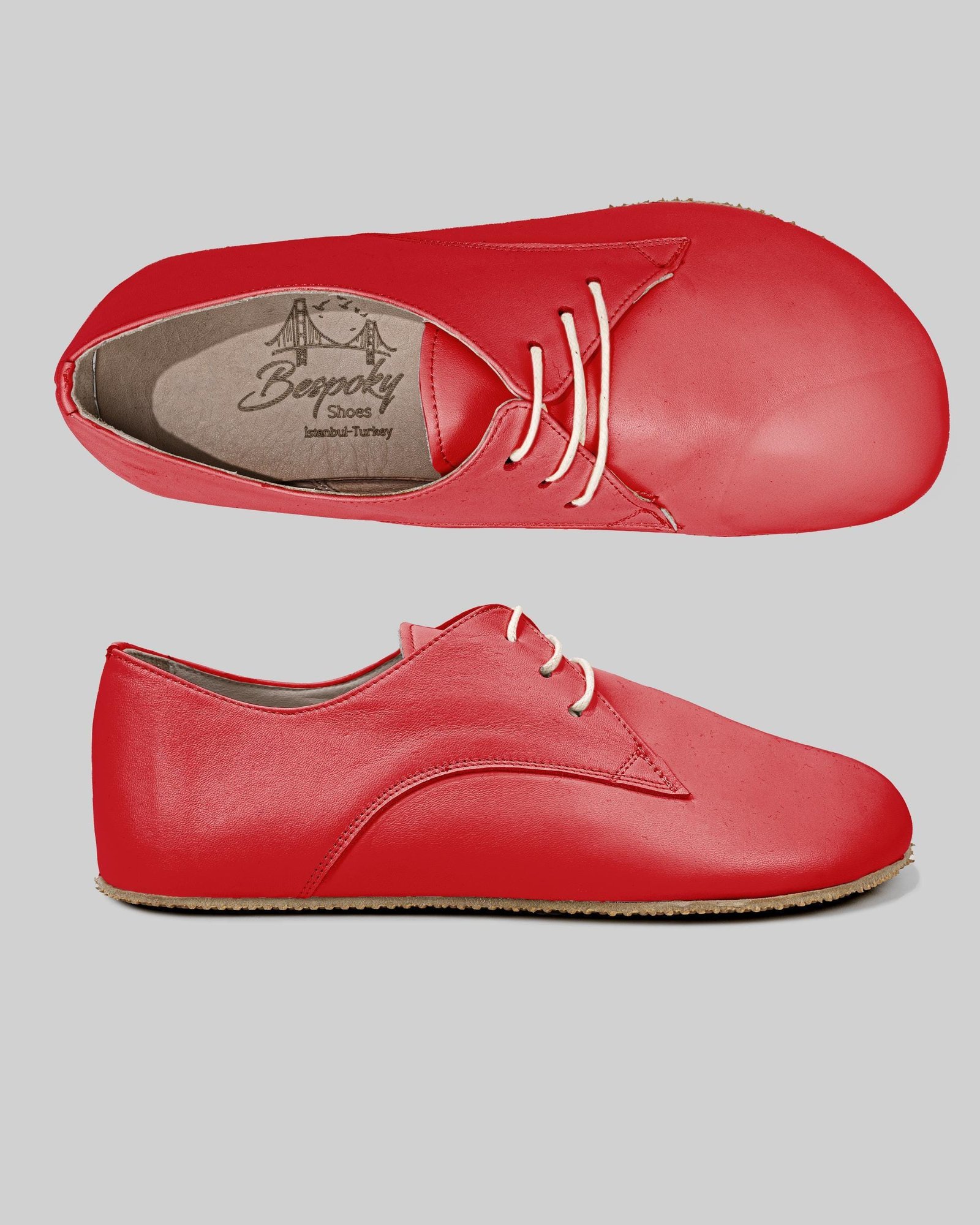 Red Leather Oxford Shoes – Handmade, Zero Drop Barefoot Sneakers