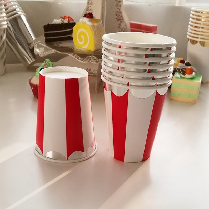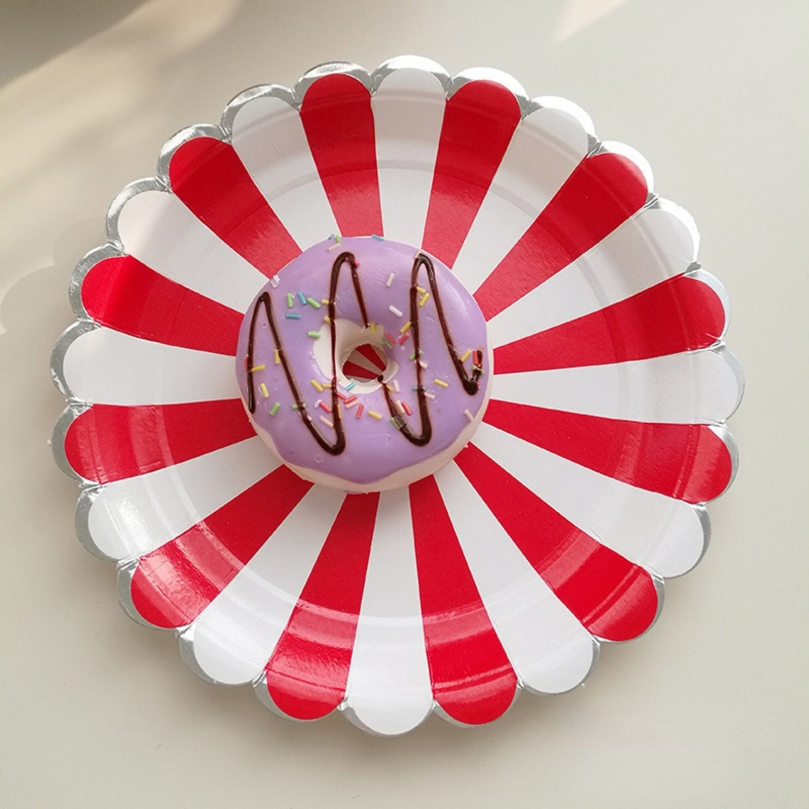 Red Stripe Party Tableware Birthday Disposable Dinnerware Paper Plates Napkins Cups Straws Party Supplies Baby Shower Wedding Decorations
