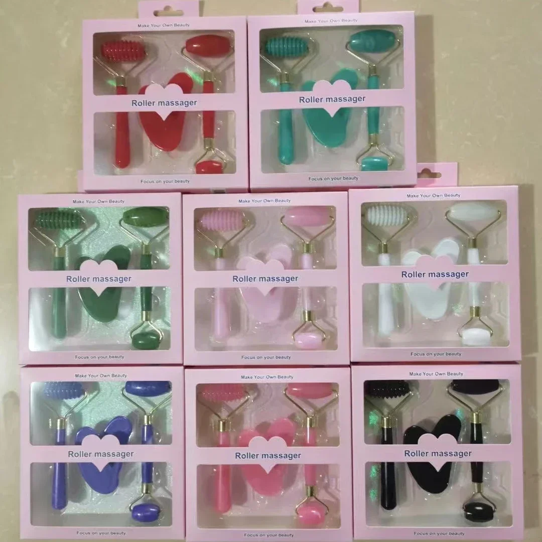 Resin Roller Massager for Face Body Gua Sha Not Jade Stone Facial Massager Beauty Health Skin Care Tool 3pcs Set