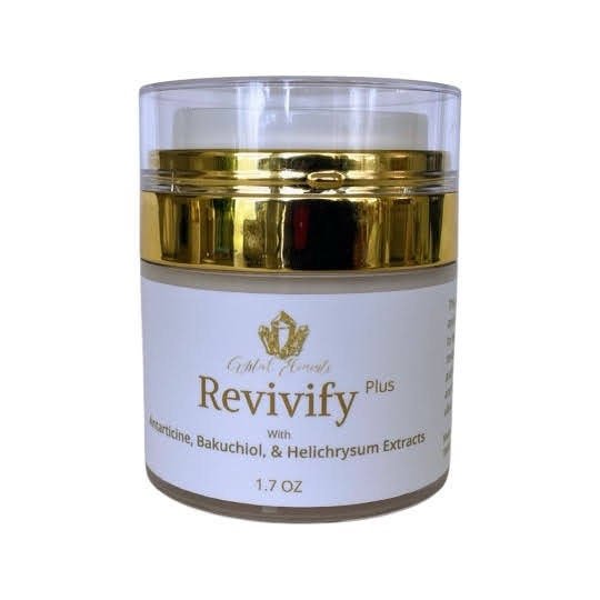 For more detailed information go to https://crystalelements.us/products/revivify-plus-anti-aging-formula-with-antartcine-bakuchiol-helichrysum-ext