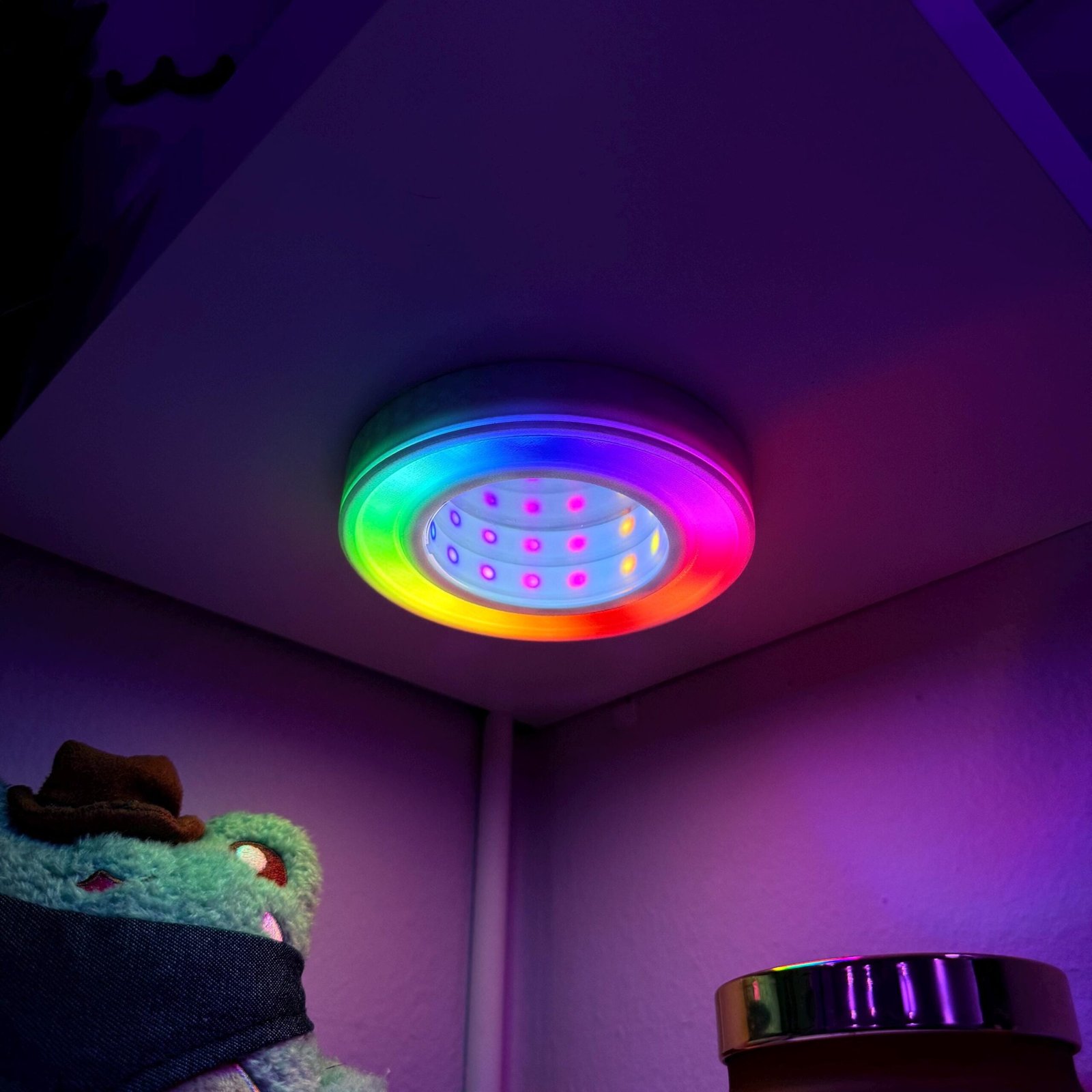 RGB Infinity Mirror Ceiling Puck – WS2812B Led Color Changing Light for Shelves, Cabinets, Gaming Setup | 3D Printed [NO CONTROLLER]