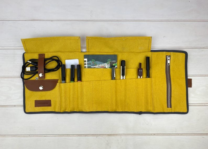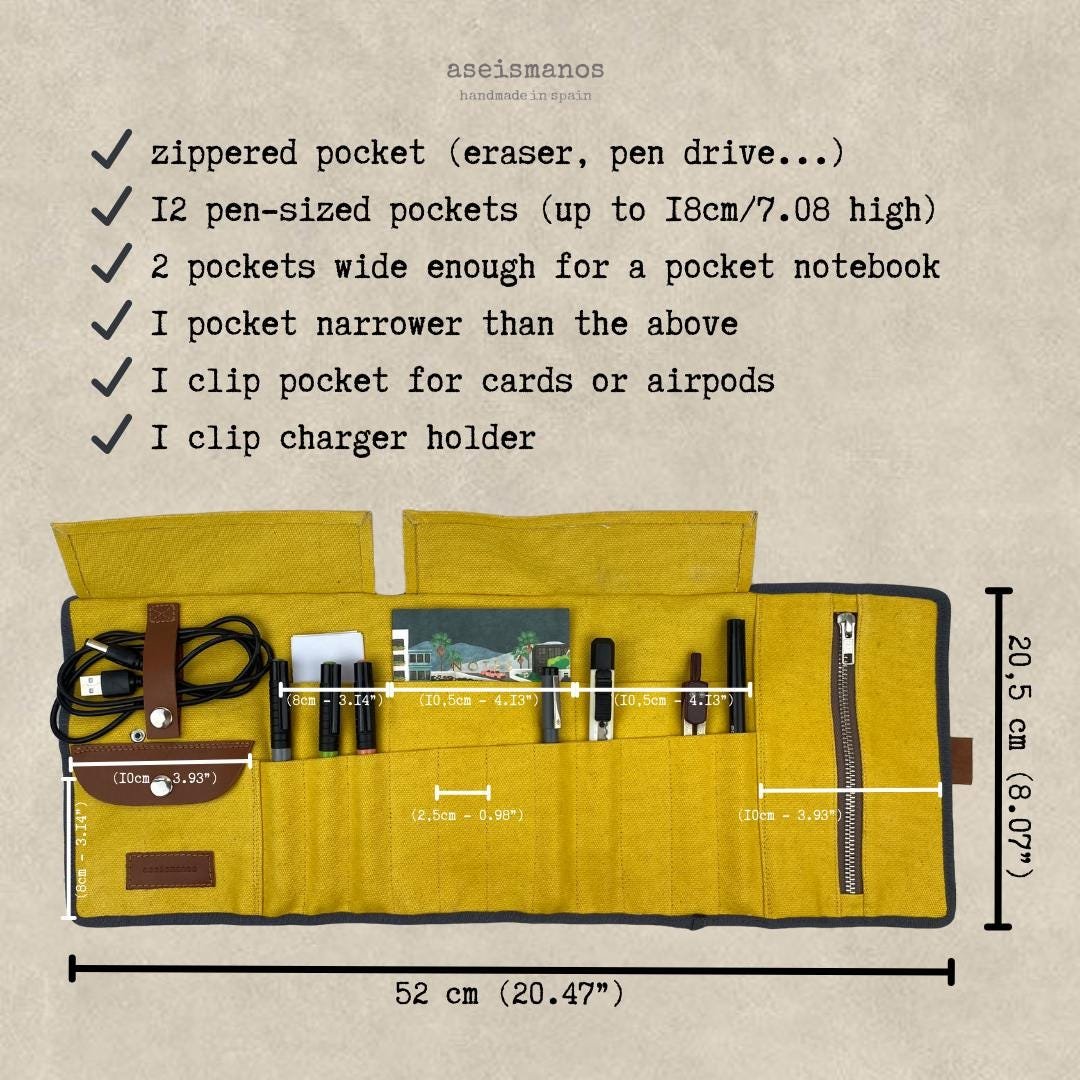 Roll up pencil wrap with 16 pockets and one zipper pouch, Artist Roll, large pencils wrap, Artist lover gift
