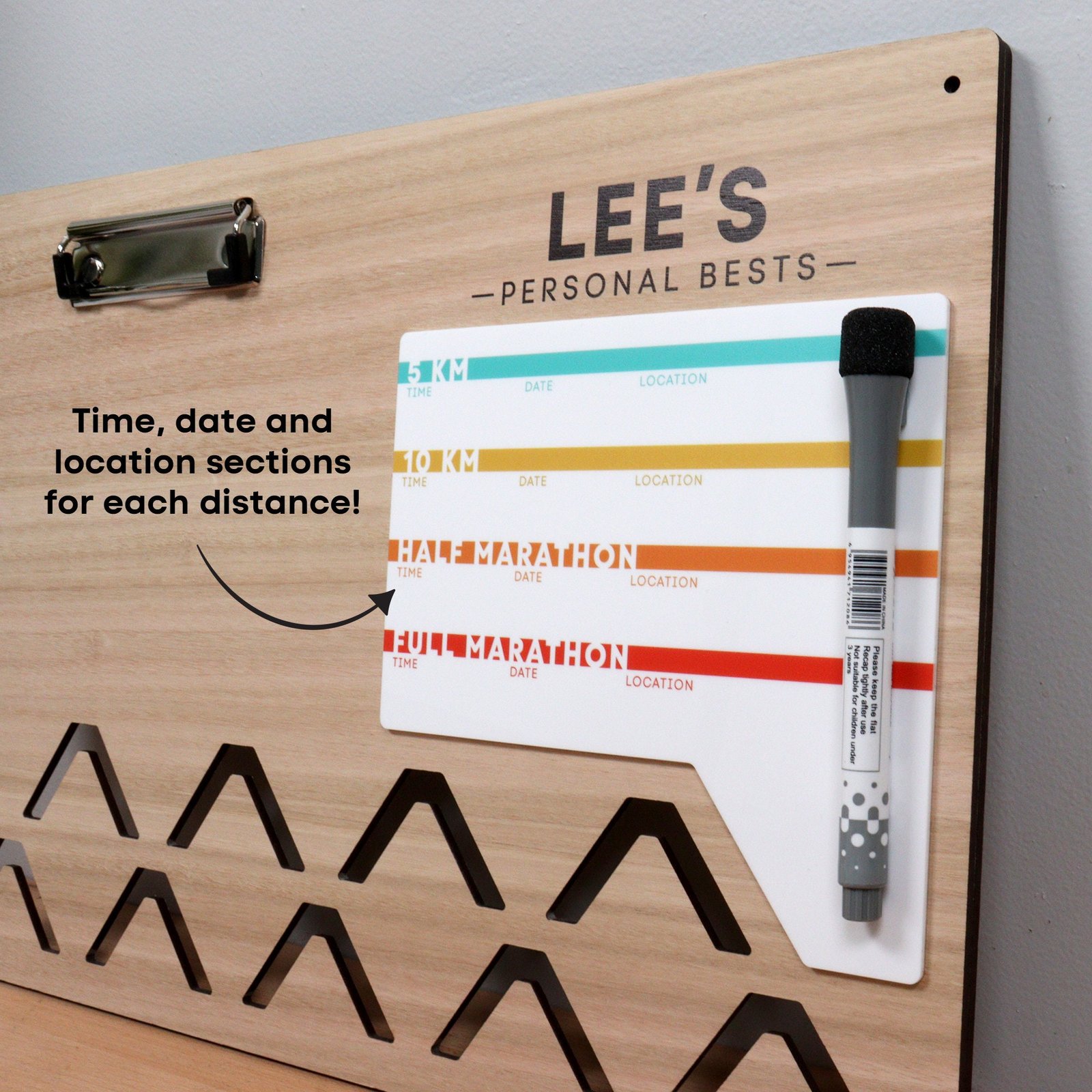 Running Medal and Personal Bests Display Board | WHITEBOARD Design | Show Off Your PB Running Medal and Bib Display Rack | Gifts for Runners