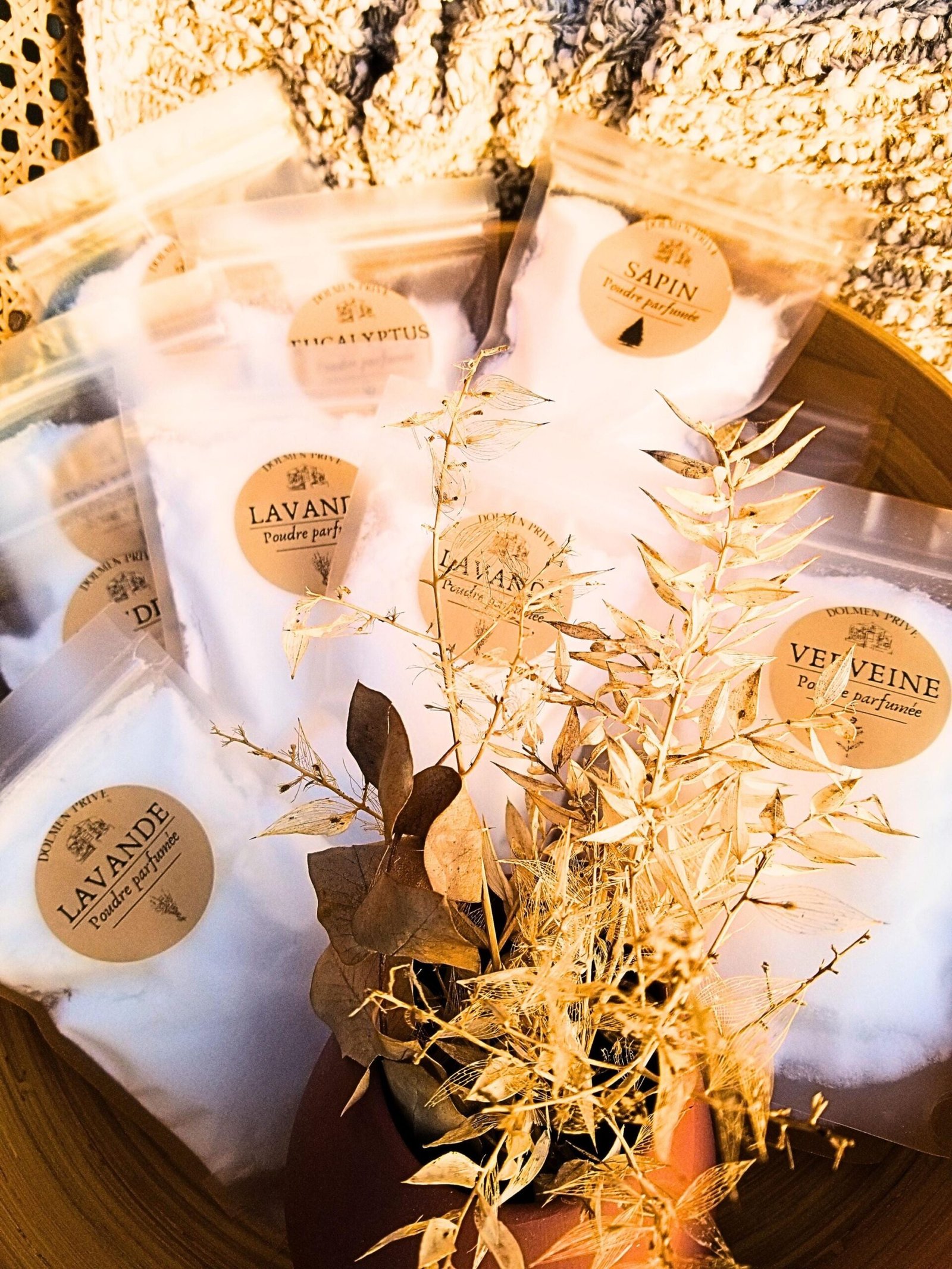Scented powder for carpets, vacuum cleaners & cars. Deodorizes, sanitizes, eliminates odors, tobacco, for a deep natural clean.