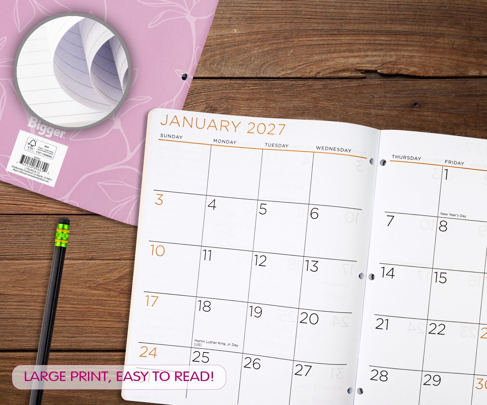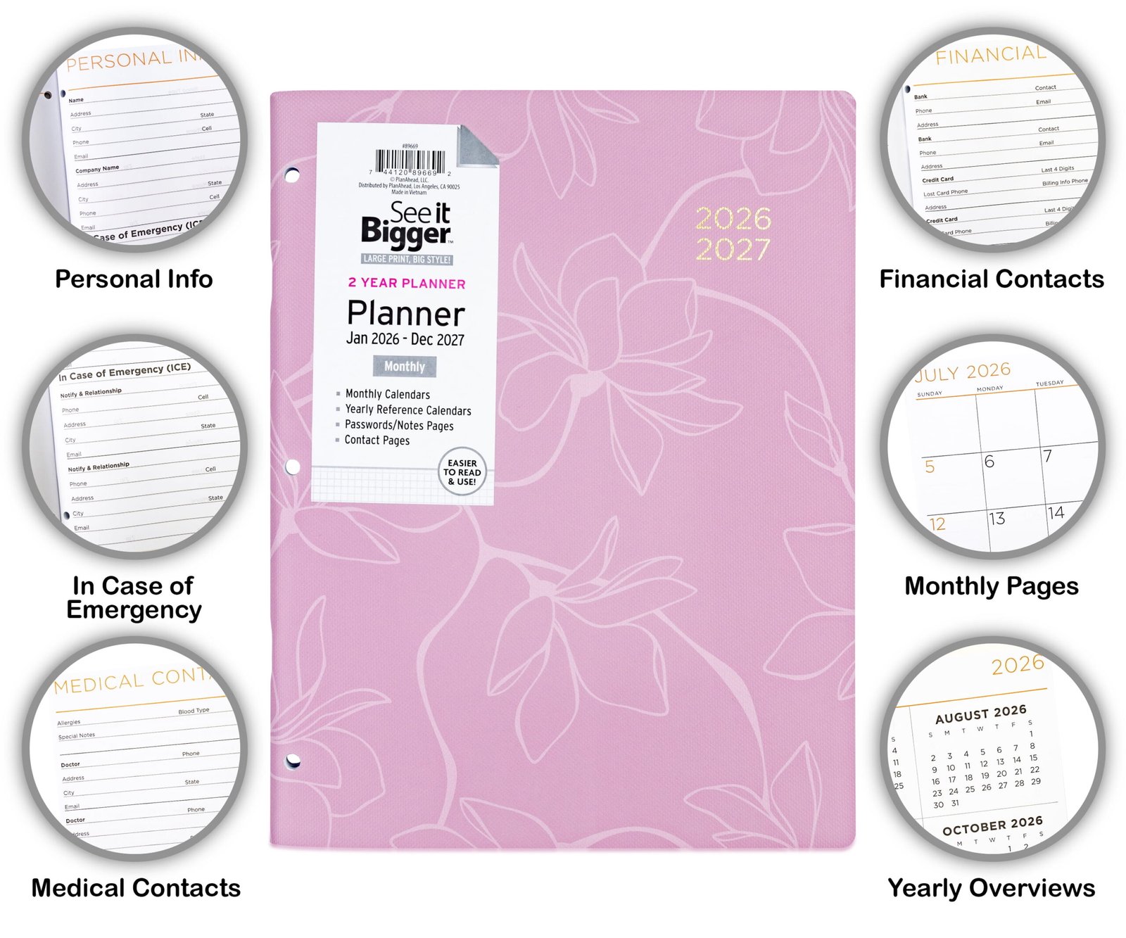 See it Bigger Monthly Planner Large 8.5″ x 11″ Rose Floral, 2-year, Jan 2026 – Dec 2027