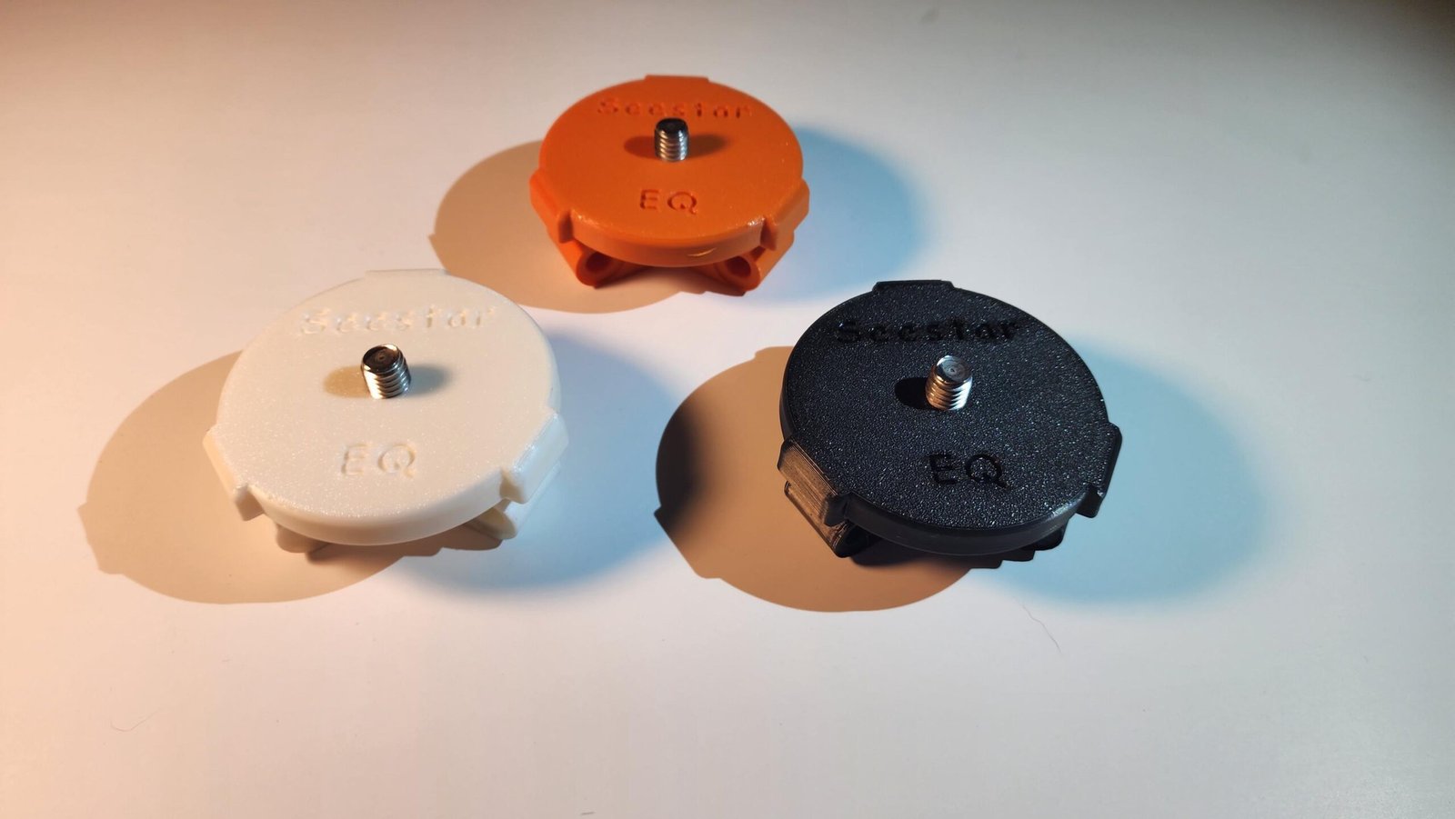 Equatorial mount for the Seestar s50 that uses the included legs and hardware. Comes with the center bolt, NO EXTRA HARDWARE NEEDED!!