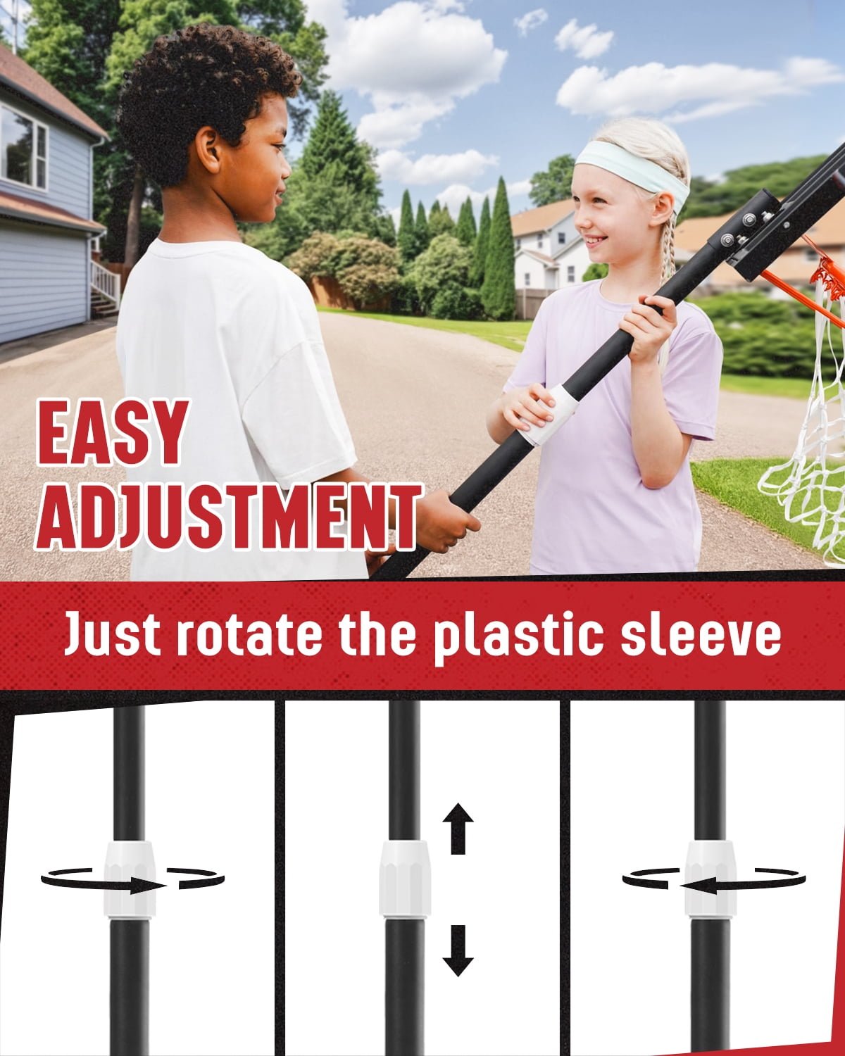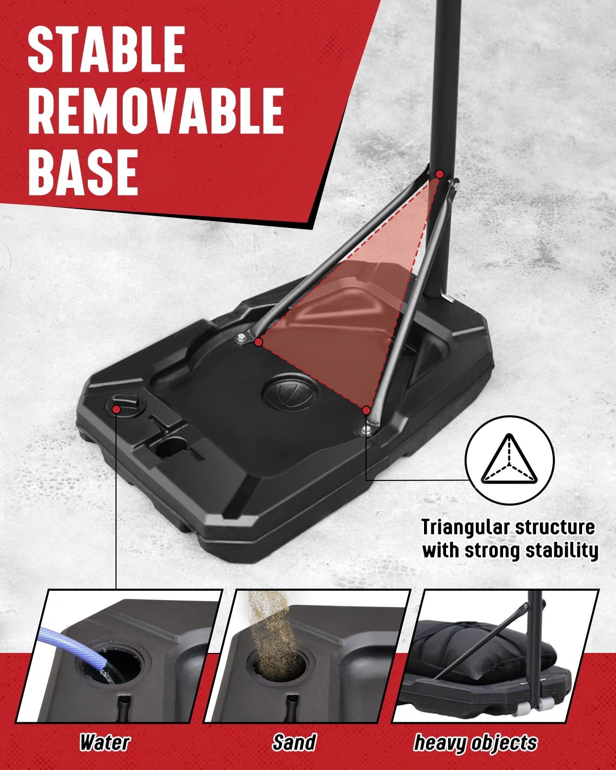 - Sturdy & Stable Design for Safety: The heavy-duty PE base is designed for ultimate stability. Fill it with water or sand, or place heavy objects in the base grooves for added support. The triangular pole structure ensures the hoop stays upright during intense play, preventing tipping over.