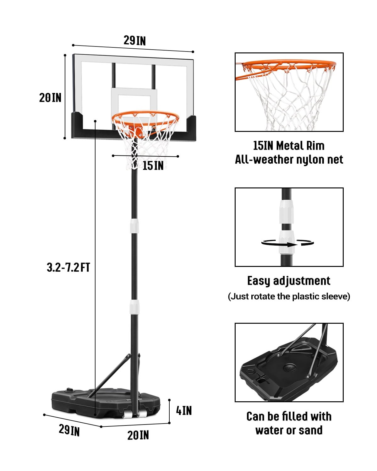 - Year-Round Basketball Fun: From poolside play in the summer set to 3.2 feet to indoor practice during the winter set to 5 feet, this hoop offers versatile use. Adjust to 7.2 feet for full-court action in the spring, making it a perfect, all-season entertainment option for the whole family.