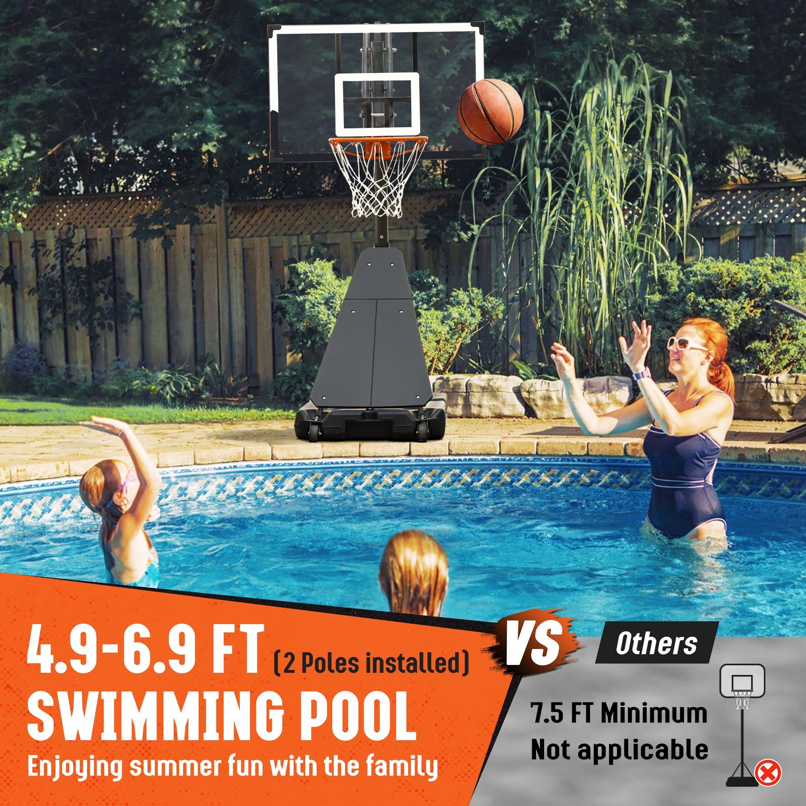 - Portable and Mobile, Switch Scenes at Will: The basketball court with 2 built-in front wheels is easy to move anywhere. You can use it in the yard, pool, beach, playground, courtyard, living room, and other scenes to meet your various sports needs. It’s sturdy enough to grow with your child, providing him with a perfect playing environment. You can also use it to hold a pool basketball party, enhance the atmosphere of family gatherings, and enjoy summer fun.