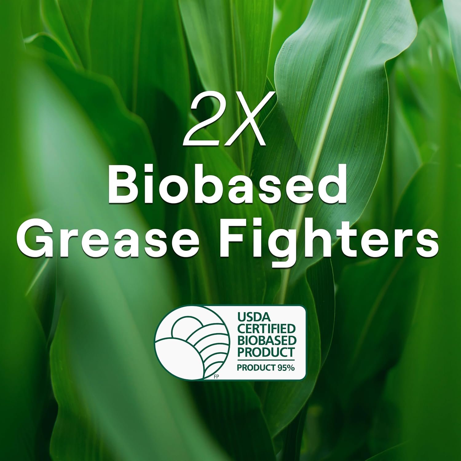Plant-based formula liquid soap fights grease and powers through tough, dried-on food