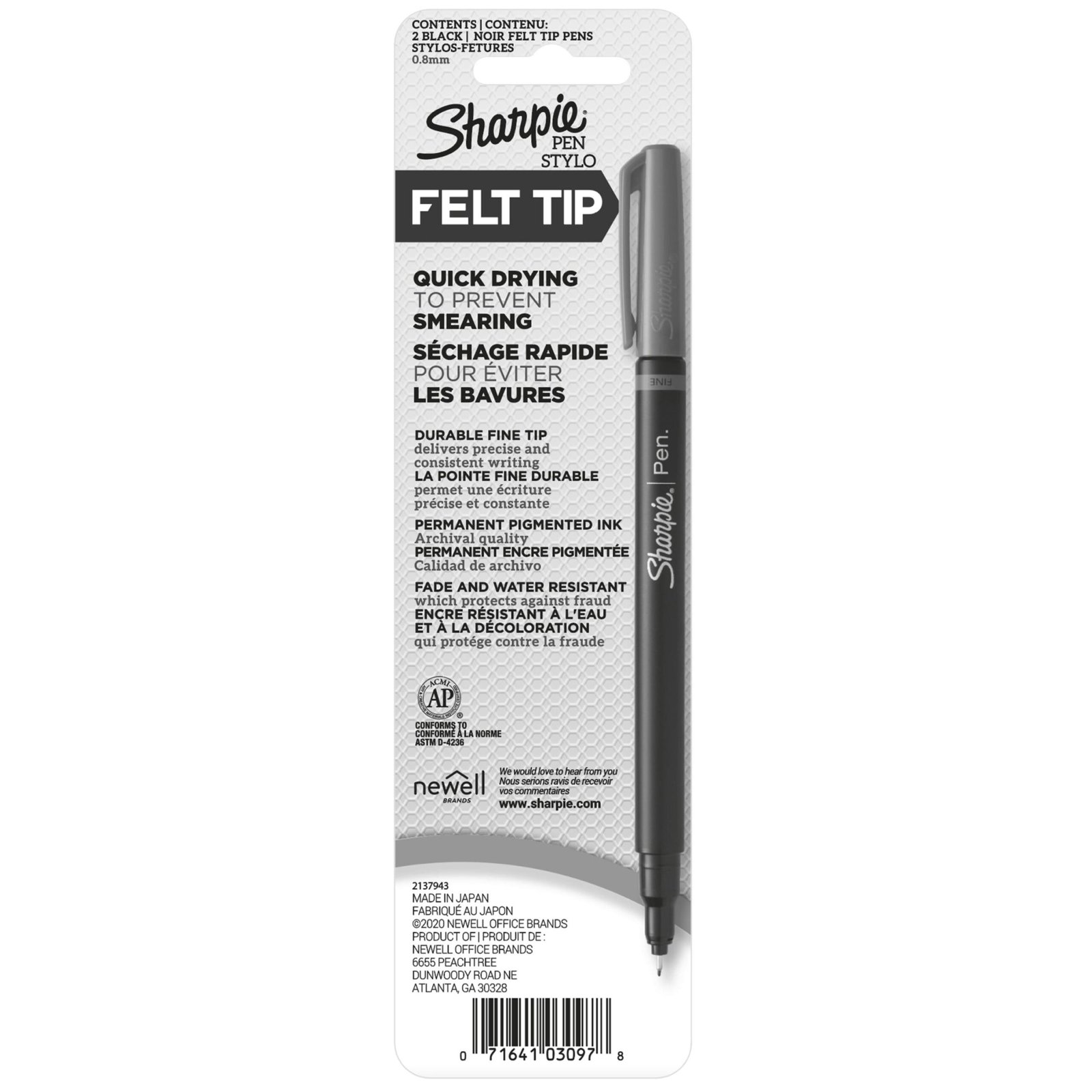 Sharpie Felt Tip Pens, Medium Point, Black Ink, 2 Count: