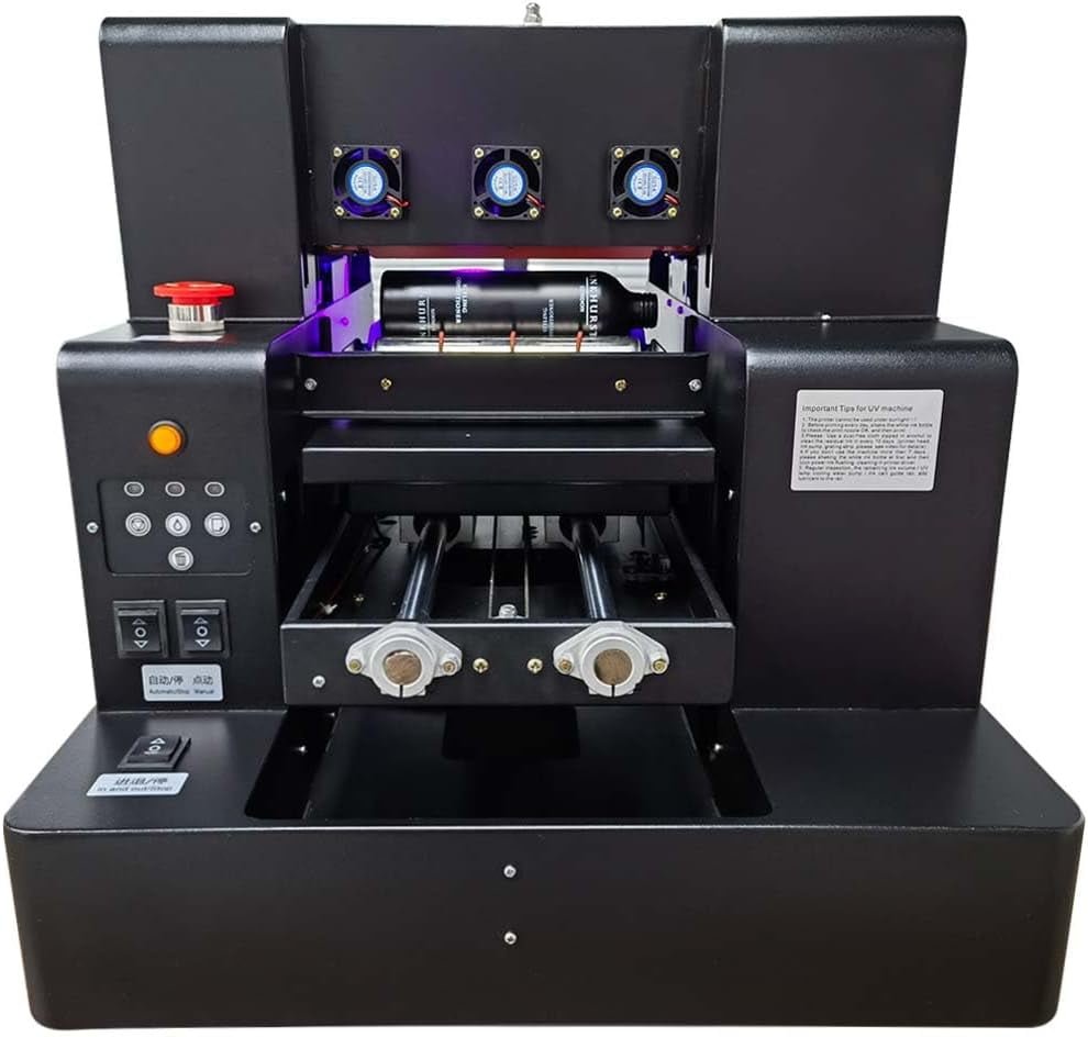 - 【Multiple Printing Modes】 This UV flatbed printer not only support flat printing, cylinder printing, but also can print DTF stickers, varnish and 3D embossing, including stunning varnish gloss effects and matte finishes. Support print on various materials, including phone cases, bottles, stickers, U disk, leather, metal, crystal, acrylic, golf balls, card, ABS,PU/PVC and more.