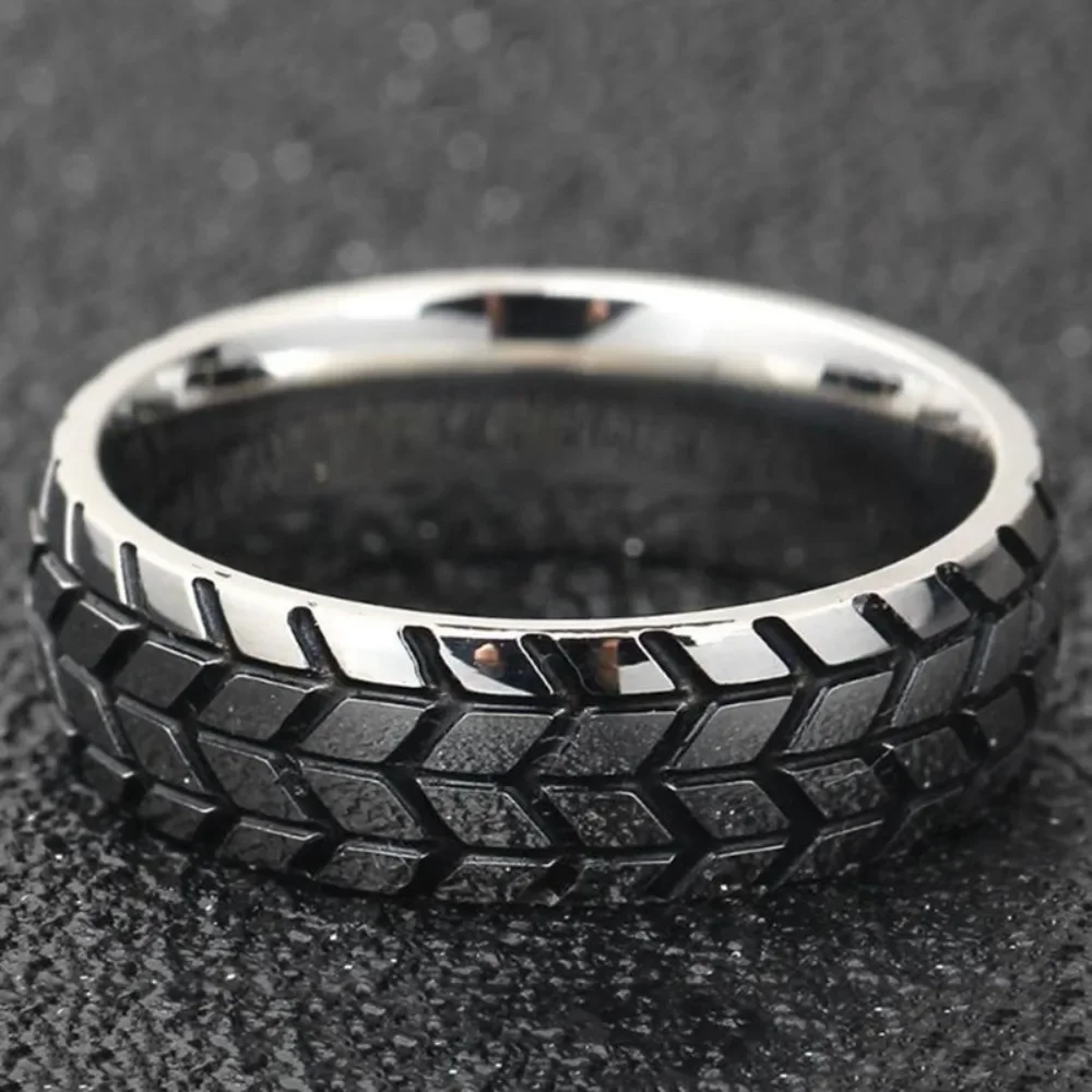 Simple Fashion Street Tires Men’s Ring Hip Hop Punk Geometric Niche Stripes Creative Trend Personality Retro Party Ring Jewelry